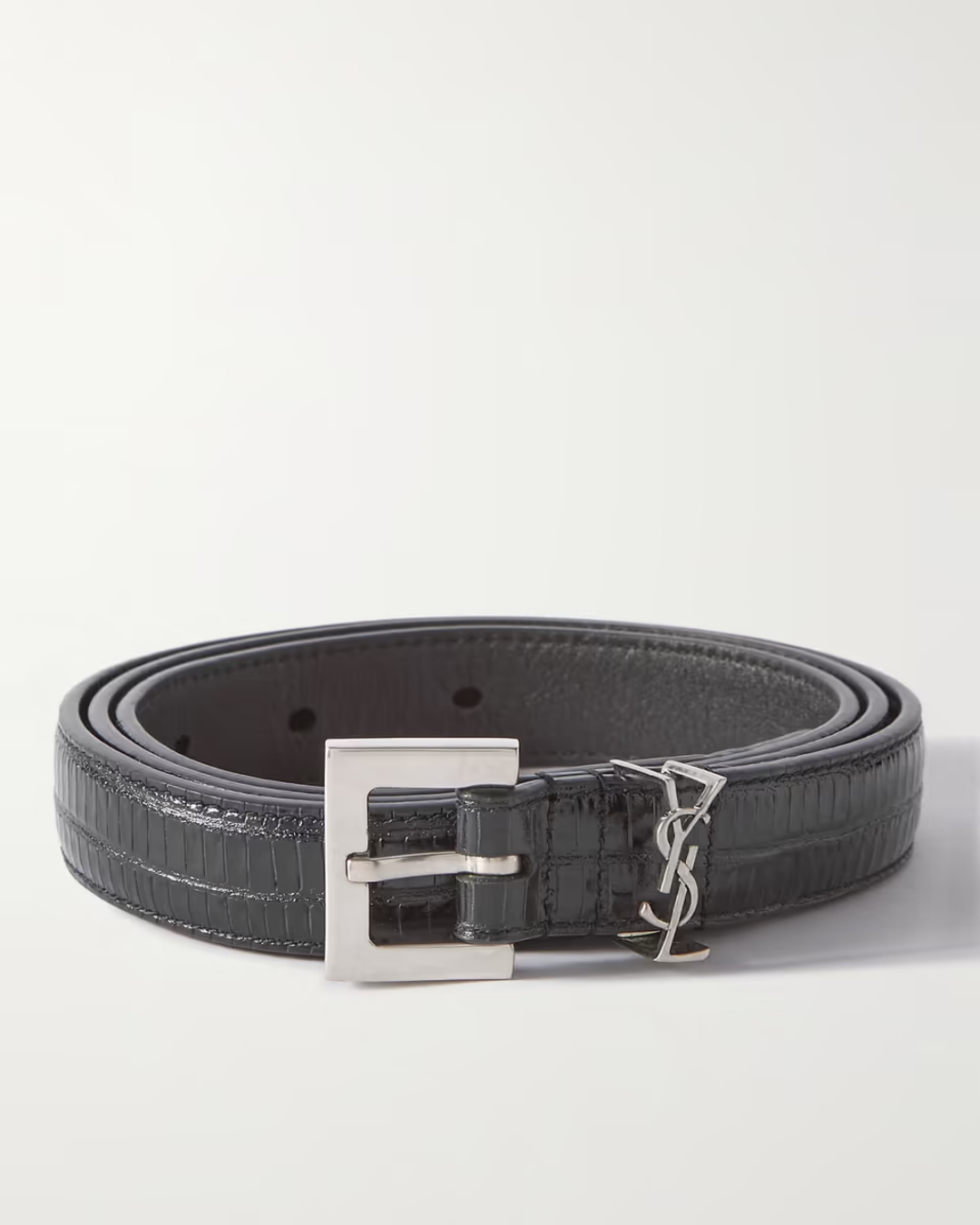Saint Laurent Logo-Embellished Lizard-Effect Leather Belt, $475