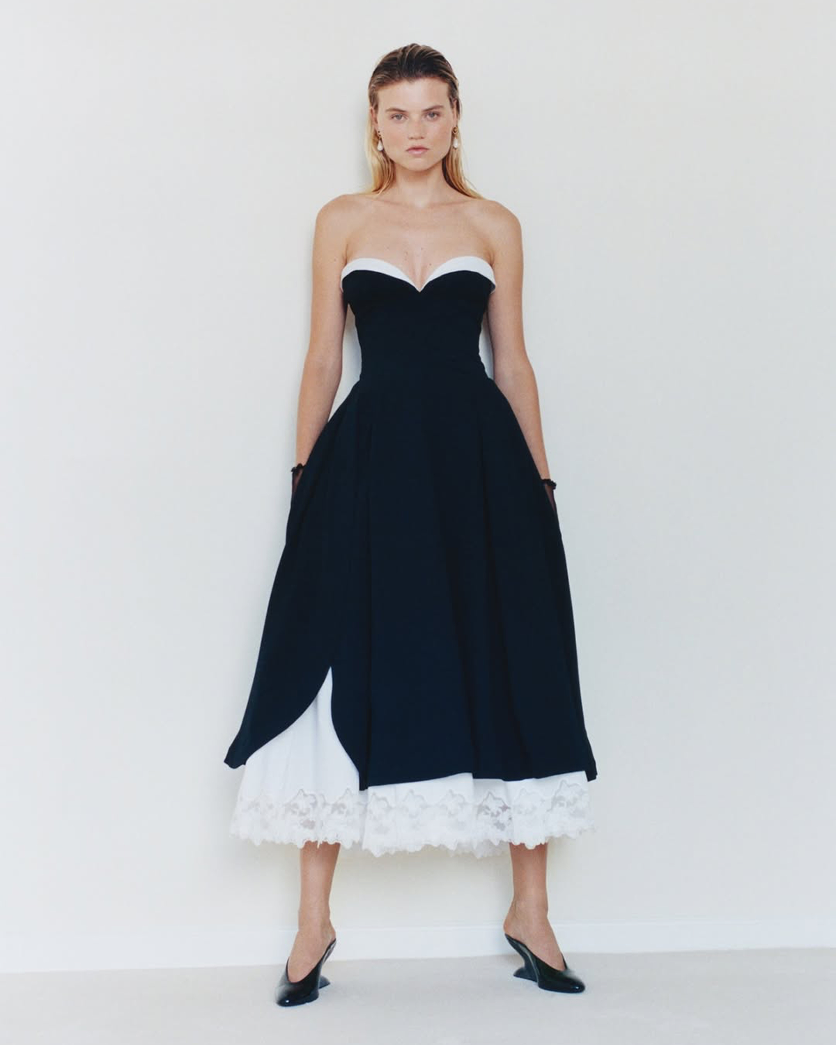 Vibrant and quirky, New York City-based brand Sandy Liang features playful details like lace, bows, and romantic silhouettes. Perfect for the creative guest, the brand brings a fresh, unique perspective to occasionwear. The pieces are great for those who prefer offbeat yet stylish outfits.