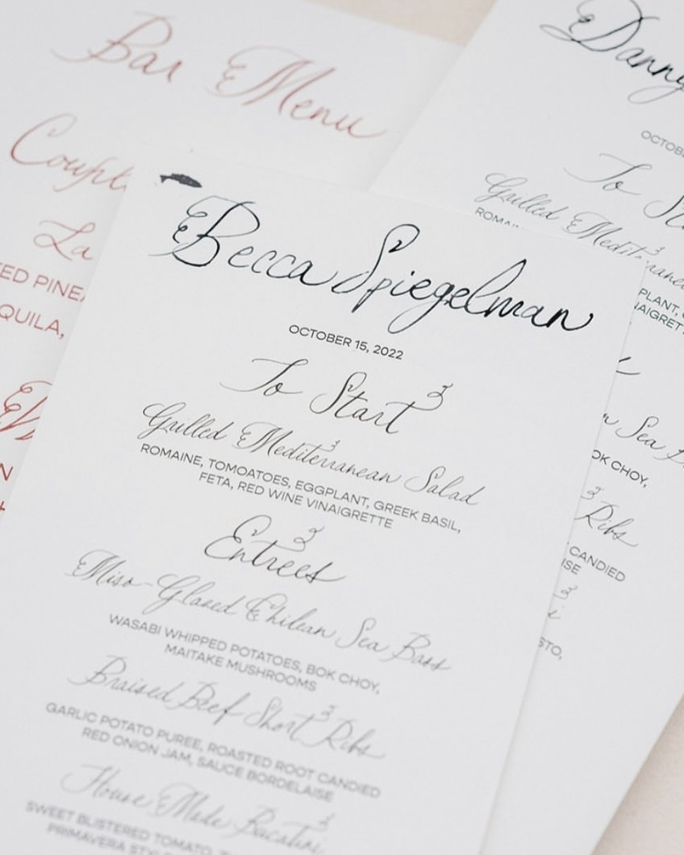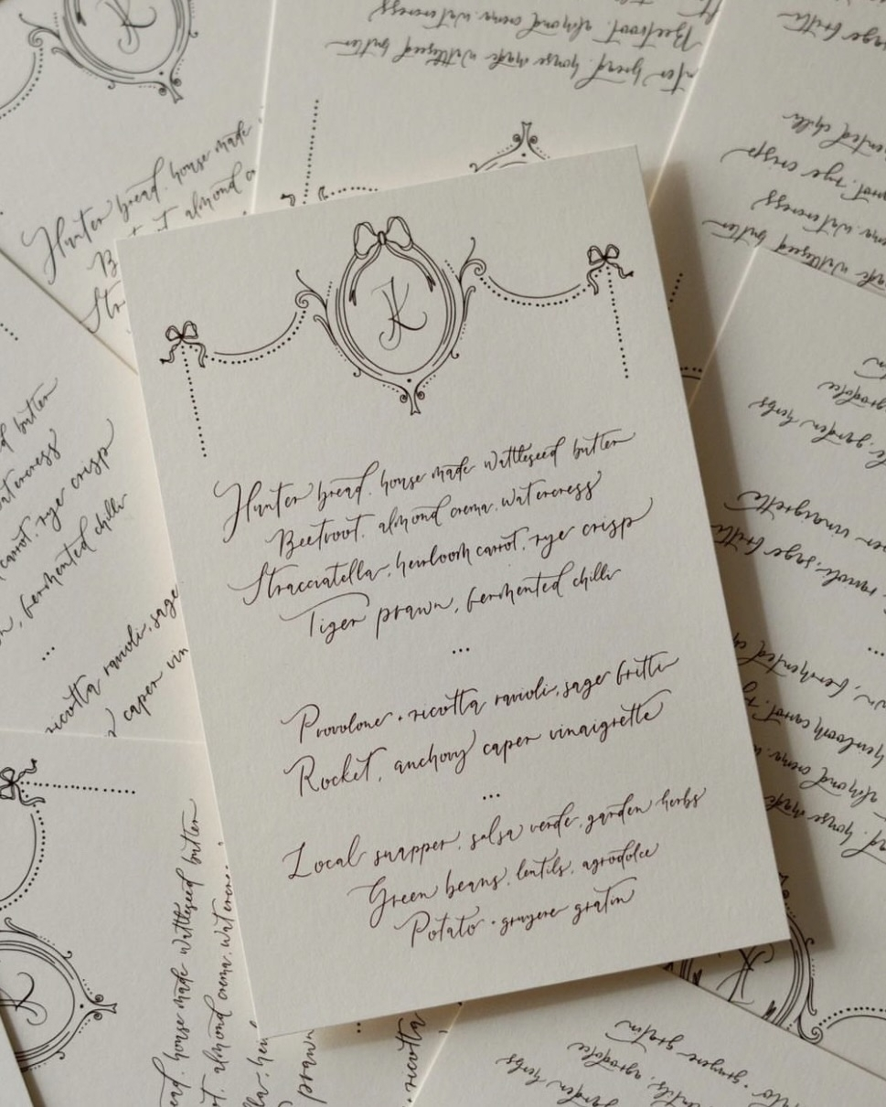 In a modern world that is often dominated by minimalism and simplicity, there is a timeless beauty in the art of fine pen, paper, and intricate calligraphic lines. Each delicate stroke of lettering transforms the written word into a graceful expression of understated luxury. Whether it's just elements of it on an invitation or a completely handmade piece of calligraphic elegance, each design is mesmerizing and stays in the memory. Here, we’ve curated a celebration of this artistry for your wedding stationery – collections designed to elevate and add a touch of sophistication to every menu, place card, or invitation. From luxurious textures to intricate scripts, these suites blend tradition with modern style, making every piece feel like a work of art.