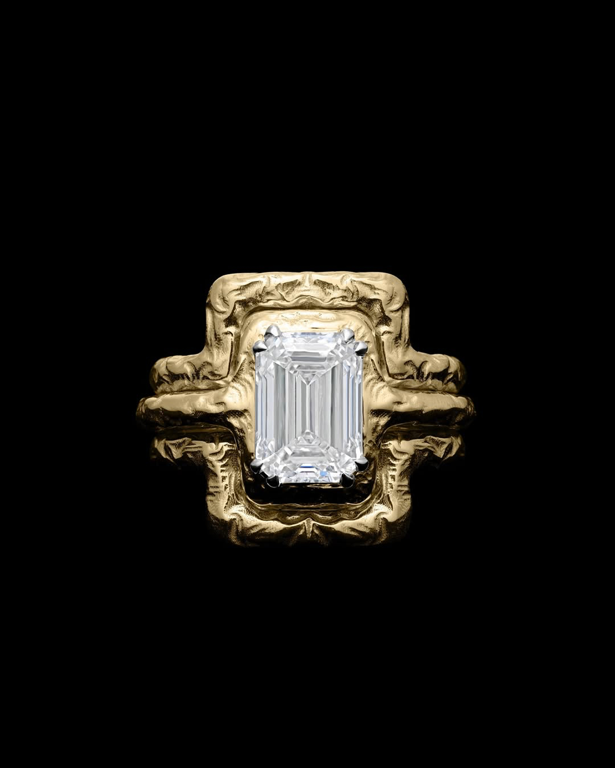 AZLEE Weathered Contour Emerald-Cut Diamond Ring, POA