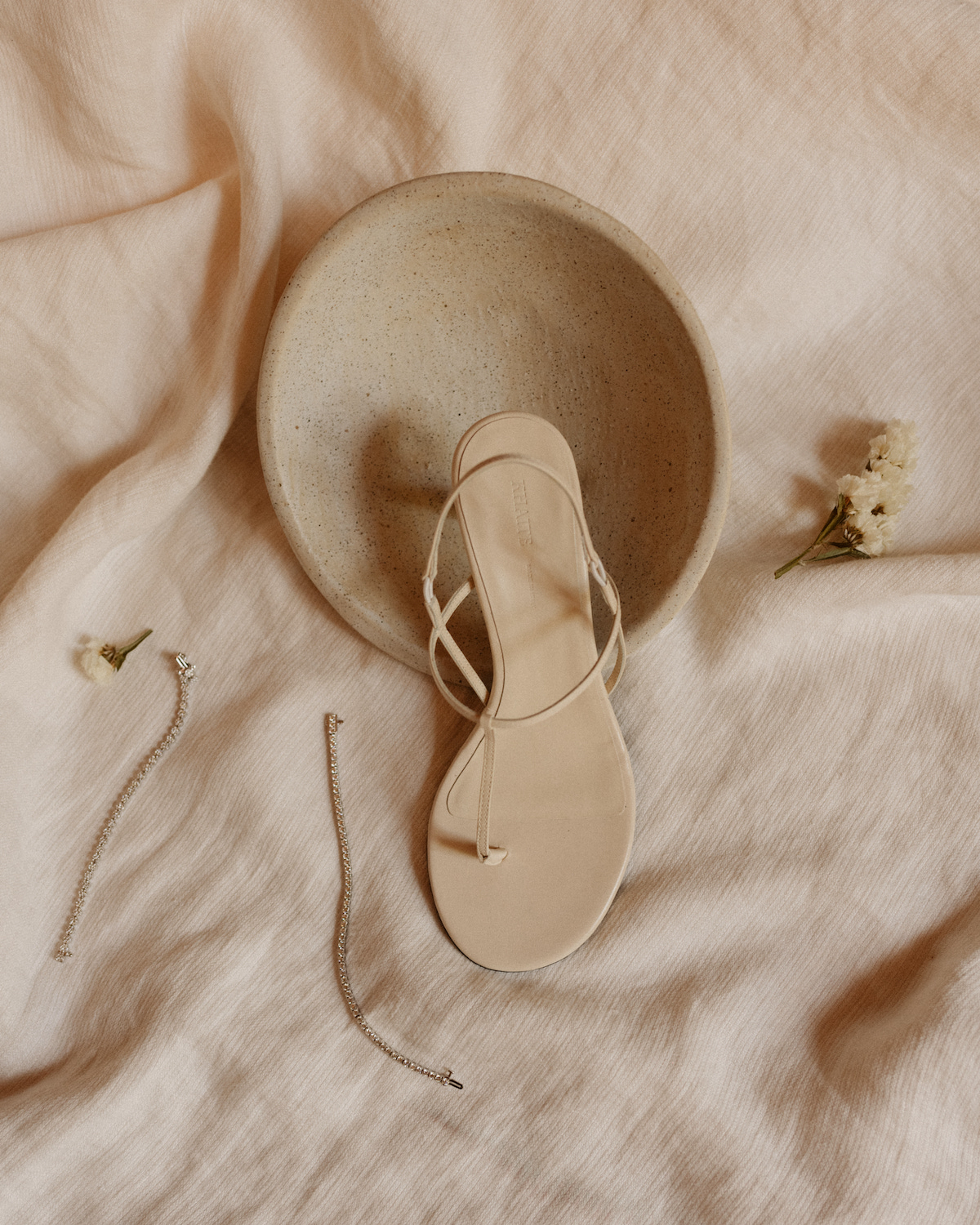 I did my own hair and makeup throughout the entire wedding, but for this day, I had my hair professionally done to create a classic French twist, inspired by Lily-Rose Depp’s look in The Idol. I wore T-strap white heels from Khaite and kept the jewelry minimal with diamond earrings and a couple of tennis bracelets.