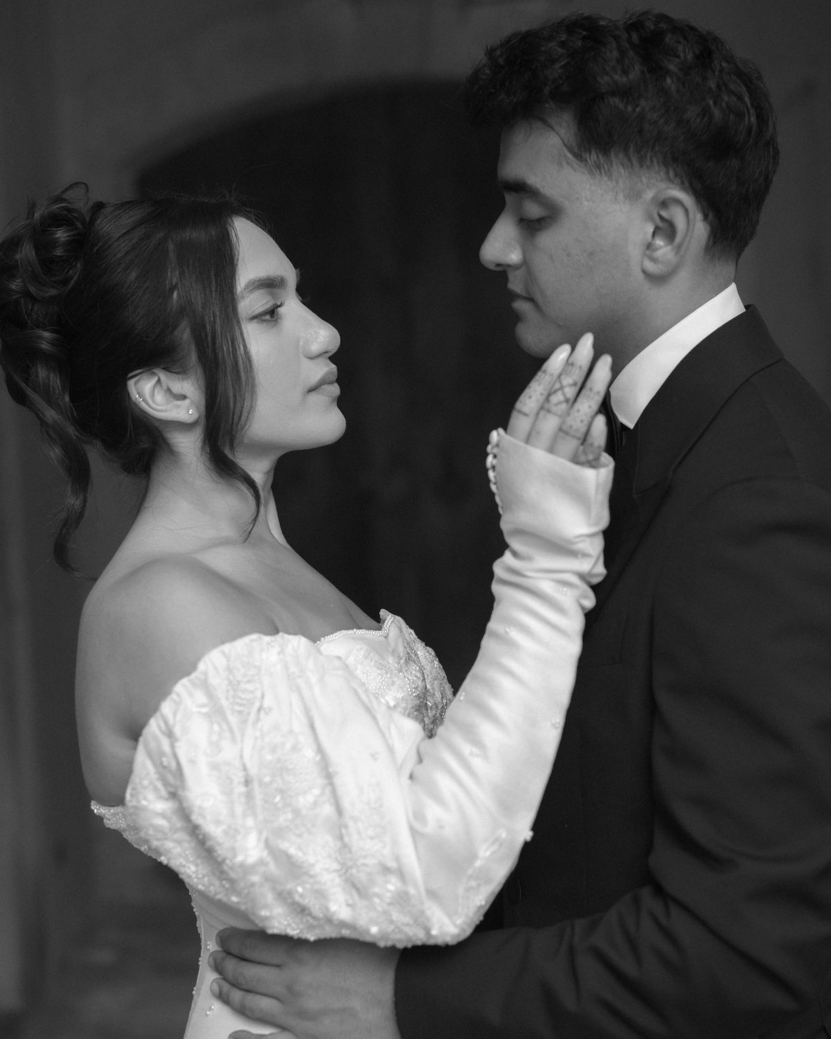 Reezaan says his favorite moment was during the ceremony when I walked in. He remembers everyone standing up at once and gasping. Since I entered from the side, he initially had his back to me, but he said he knew the moment I appeared based on everyone’s reaction. My favorite moment was Reezaan’s Baraat before the Sangeet. A baraat symbolizes the groom’s journey to marry his bride and the joining of two families. As I approached the front of the villa with my family and close girlfriends, I could hear the loud music and feel the energy of Reezaan’s friends and family celebrating outside the gate. When he entered with everyone, I got chills and truly felt the happiest I’ve ever been. One of Reezaan’s friends spontaneously lifted him onto his shoulders, and they walked toward me, singing, shouting, and jumping up and down—such a core memory.