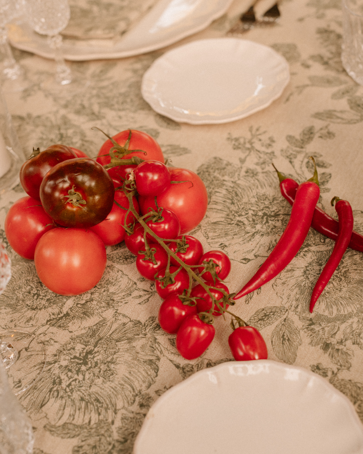 To bring this to life, we incorporated Turkish rugs and Toile de Jouy linens to enhance the cultural richness of the decor. Across the events, we also featured drippy candles and unique blooms, alongside an innovative use of nuts and produce—like heirloom tomatoes, peppers, watermelons, and figs. Every detail was designed to be artistic, romantic, and unexpected.