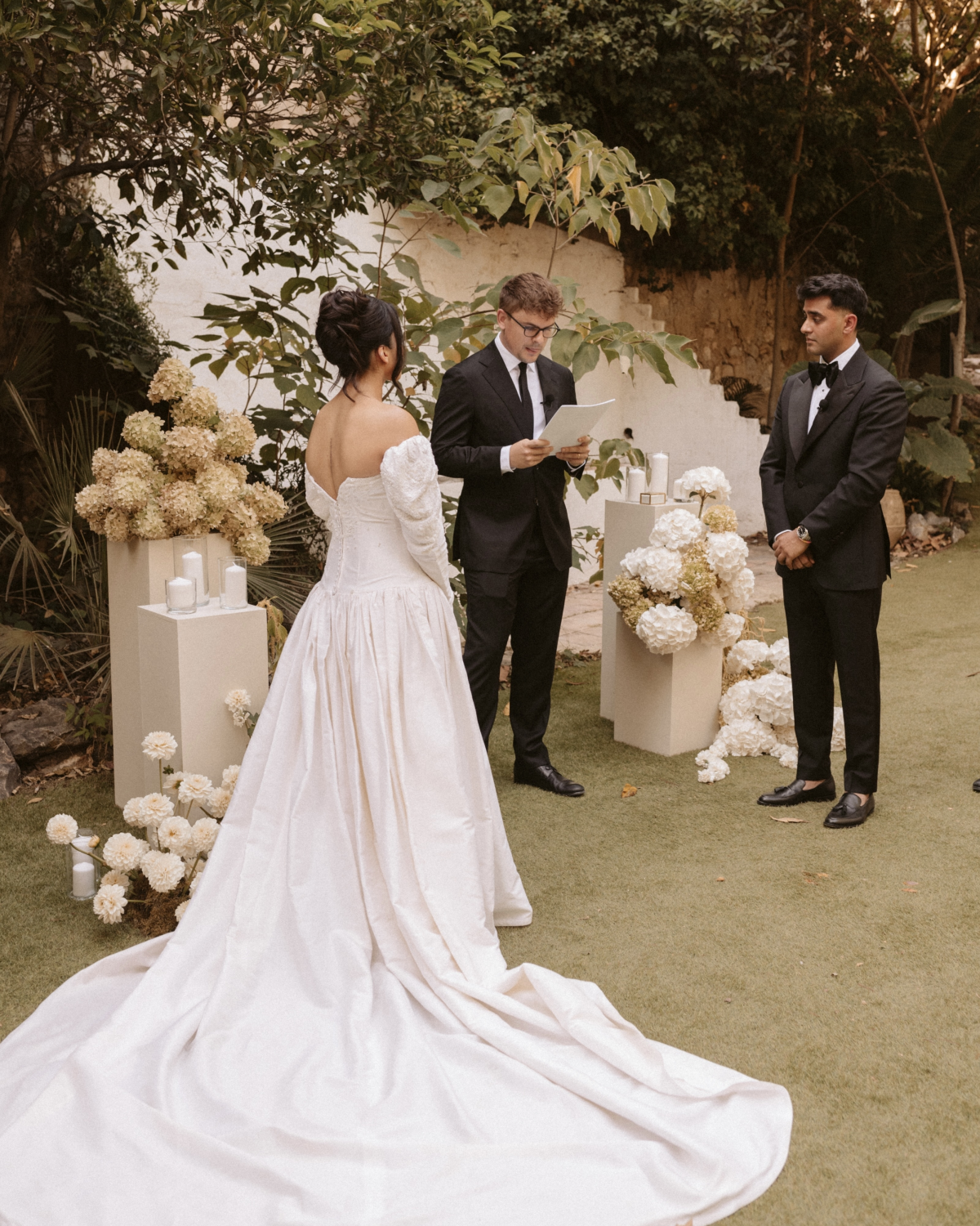 We envisioned a celebration grounded in art, romance, tradition, exceptional food, and great music. Our goal was to create an organic, intimate atmosphere where our closest friends and family could gather, celebrate, and feel like they were on vacation. It was important to us that the weekend felt elegant but also like one big, unforgettable party. We love to travel, so we drew inspiration from the places and styles we’ve experienced over the years. Stylistically, we envisioned a blend of Indian heritage-inspired luxury with old Spanish and French country charm. We had four events, so we wanted each day to feel unique while still seamlessly tying back to our overall vision.