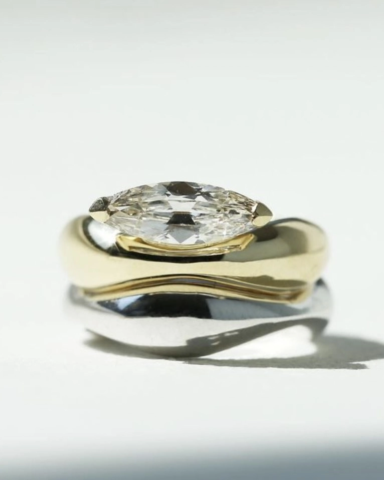 One of the big trends in wedding jewelry is the use of mixed metals. Couples are opting for jewelry pieces that feature a combination of different metals, such as gold, platinum, rose gold, and even more unconventional choices like titanium. Mixing different colors and textures allows couples to create customized looks that suit their personal style and complement their existing jewelry collections. Whether it's a two-tone mix or a bold combination of metals, such rings add depth to the overall design.