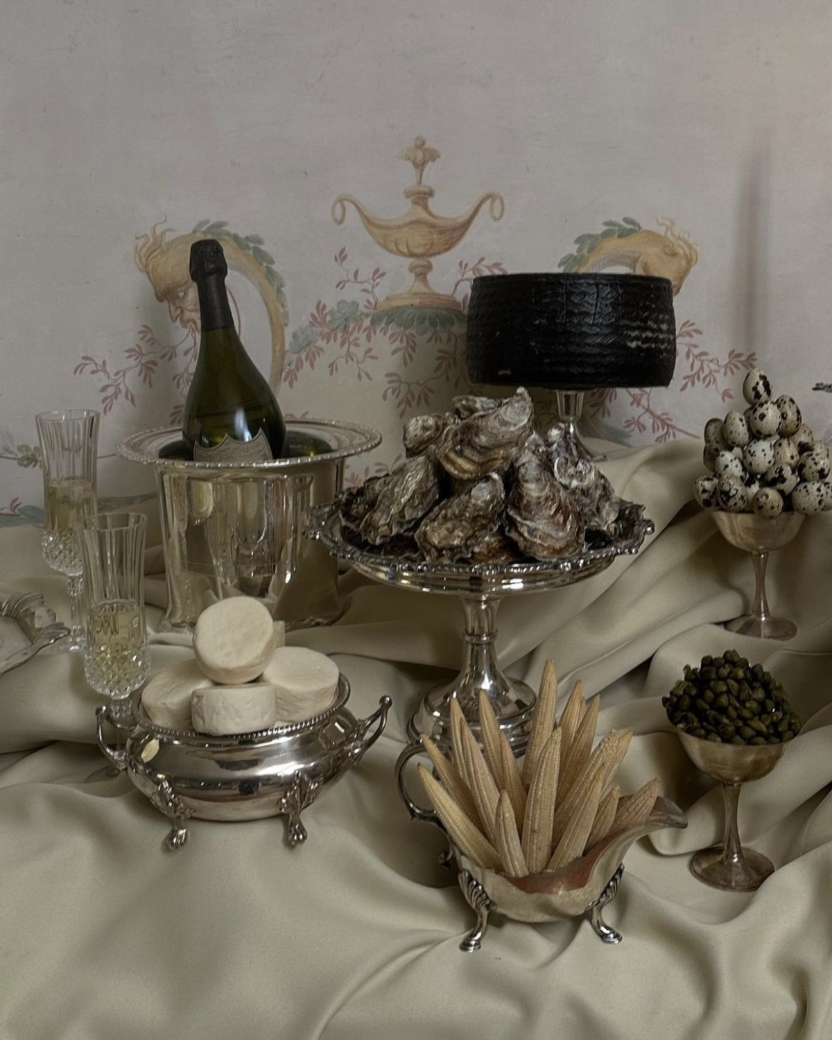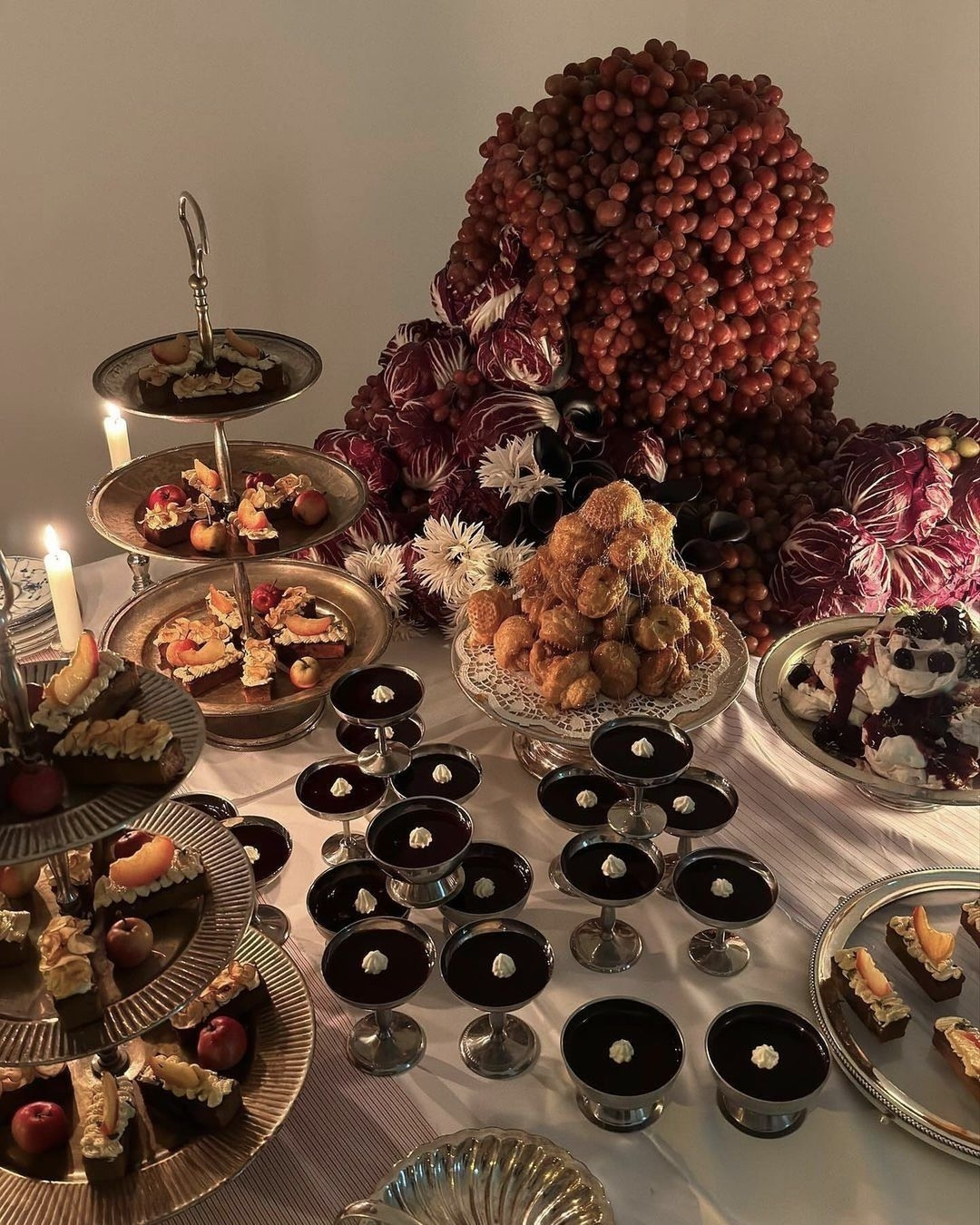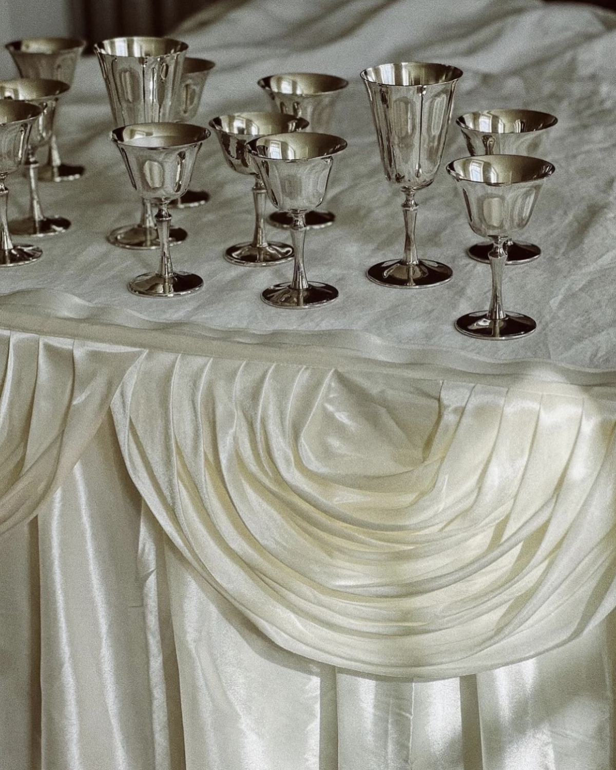 Enter a world where classical European elegance meets timeless artistry in wedding event design. Inspired by the poetic richness of classical still life oil paintings and reminiscent of a medieval banquet, every detail is steeped in opulence and an undeniable moody ambiance. Spilling with draped ivory taffetas, alluring antique silverware, scattered dark grapes and stone fruit, aged blooms and ornate goblets under flickering candelight, all set against a backdrop of European inspired architecture. Evoking a sense of refined beauty that transcends time and eras, a beautiful approach to any wedding tablescape.
