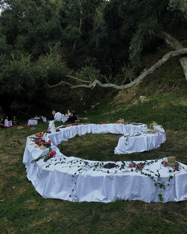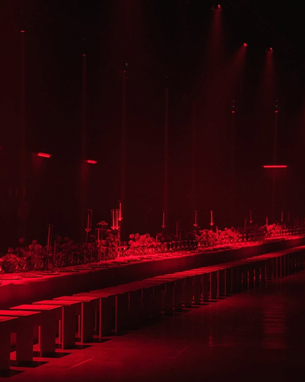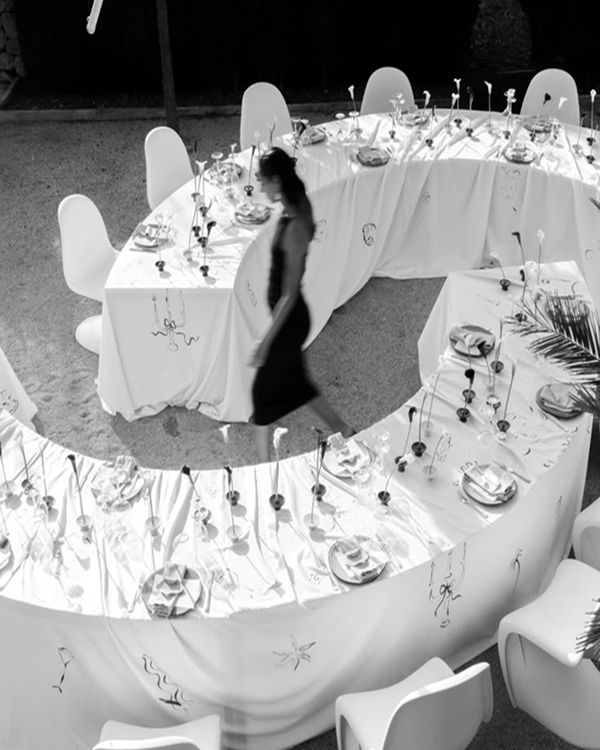 Seating arrangements are no longer an afterthought but a design statement in their own right. These non-traditional arrangements encourage interaction and create a striking visual impact. Instead of the traditional aisle, line your guests in wavy patterns, geometrically spaced arrangements, or round cirlces to create a curated, editorial feel, reminiscent of a high-fashion runway show.