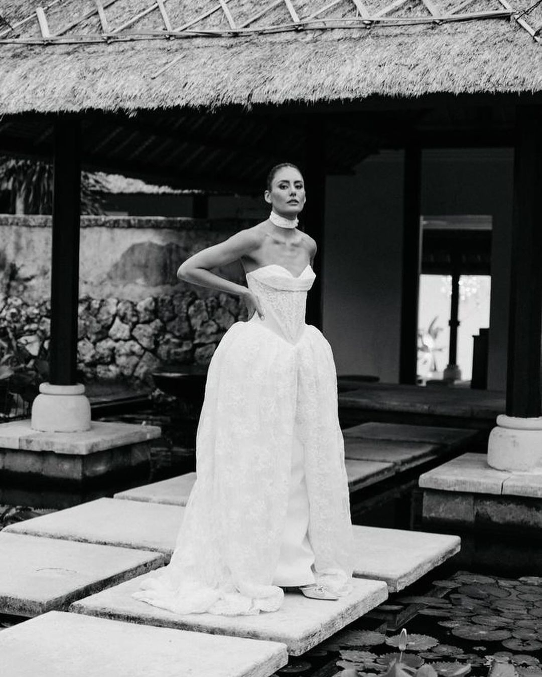 To have your wedding dress looking on point in your portrait photos, enlist a bridesmaid or family friend with a keen eye for detail to make sure everything is sitting perfectly. Resetting the dress and veil between scenes and looking out to ensure that no unwanted tags, undergarments or tapes are showing will take your wedding photos to the next level and save you from those cringe moments!