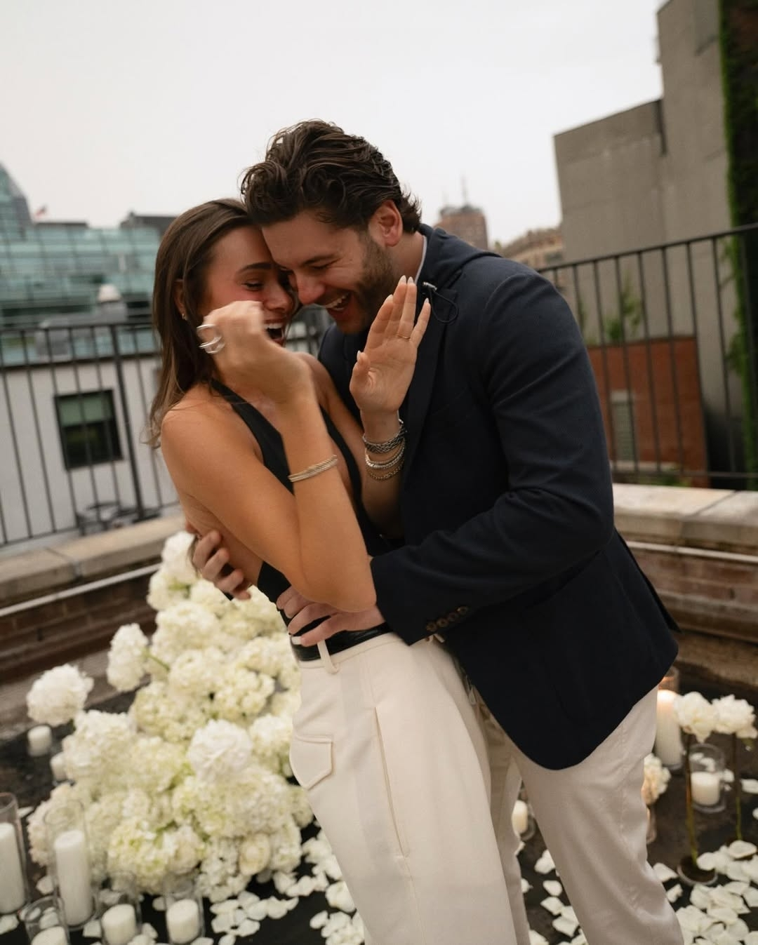 The couple went public with their relationship in 2023 when Danielle opened up in a heartfelt Instagram post. After nearly two years together, Cooper popped the question with a dreamy rooftop proposal that felt perfectly cinematic—complete with candles and flower petals setting the romantic scene. Danielle quickly shared the moment with her followers, posting a carousel of intimate photos on social media, including a close-up of her stunning pear-shaped diamond ring.