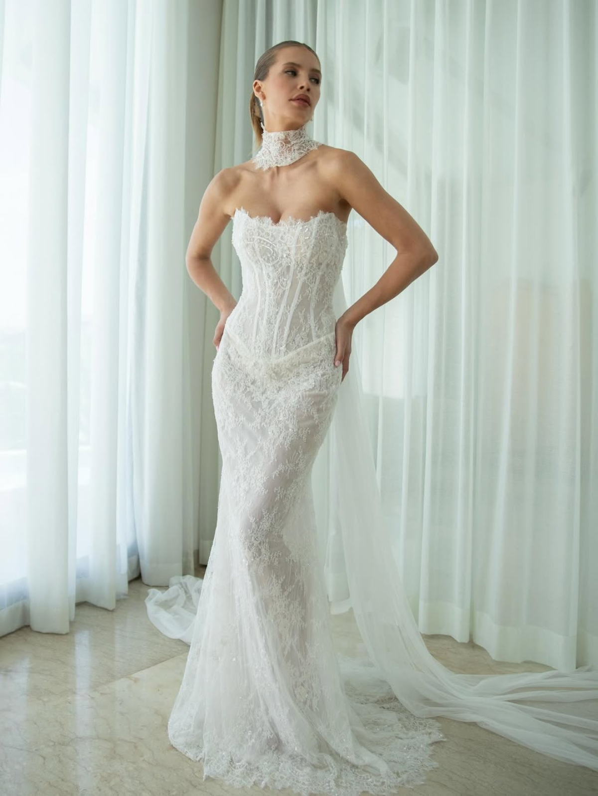 Before trying on a dress, Christy Baird, the heart and soul of bridal boutique Loho Bride, encourages brides to define their aesthetic, whether that’s sleek and architectural, undone and sensual, or romantic with an edge. “When you shop from a point of view instead of a Pinterest board, it becomes much easier to filter out what’s ‘hot right now’ versus what actually feels like you. Trends should become references, not rules!” Showroom Theory shares a similar perspective: “Trends aren’t the enemy. Unfiltered trends are. I always encourage brides to treat trends as reference points, not prescriptions.”