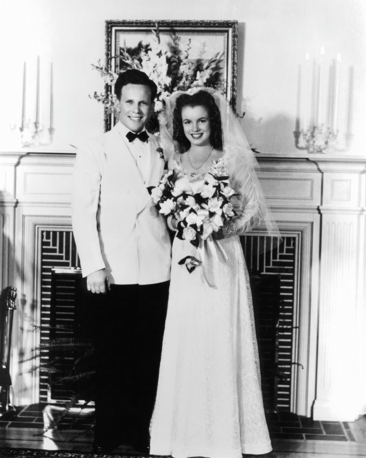 Monroe's first marriage took place before she became famous. But it was not for love: when the mother of a 16-year-old girl was once again taken away for treatment in a mental hospital, Norma (the very name Marilyn was given at birth) decided to get married, just to not be back in the orphanage. The candidate was a neighborhood boy, James Daugherty, who had long been paying attention to her. The wedding took place on June 19, 1942, in Los Angeles. The look of the future movie star reflected the style of the 40s: long pinned sleeves, maxi length, straight silhouette, lace inserts and floral fleur-de-lis on her head. From the outside, it seemed that their union was perfect. In reality, Norma saw her husband as a father and called him "daddy". Things fell apart when Dougherty was stationed overseas as part of the merchant marine. In 1946, the girl filed for divorce. Subsequently, she repeatedly called that marriage boring.
