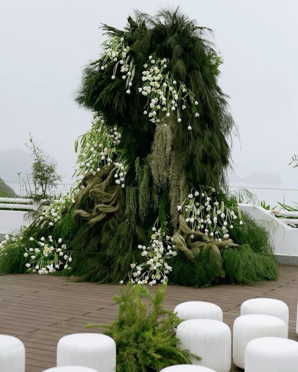 A journey back to nature, the perfectly imperfect beauty of wild, untamed overgrowth, event design embracing lush greenery, opulent moss, textural grasses and green florals are having a moment for ceremony florals. Bursts of textural varieties grow, climb, entwine and sprawl across the space, forming abstract sculptures and installations that create a striking visual contrast of soft verse hard, mother nature verse the man made.