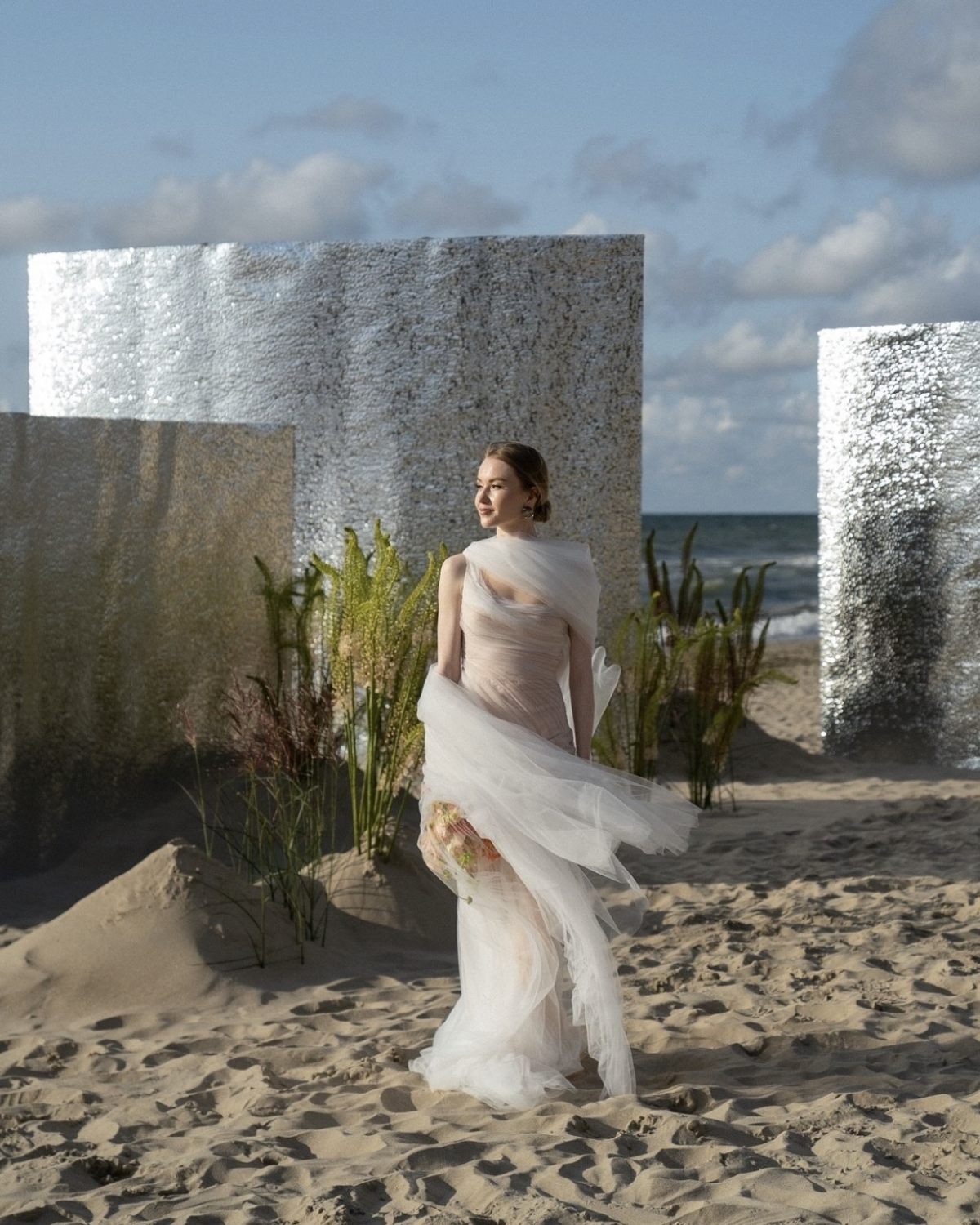 A grounded arch is a unique twist on the traditional floral arch, designed to stay low to the ground while still framing the couple beautifully. Instead of towering over the altar, this design uses floral arrangements that follow the shape of an arch, but remain at ground level, giving the ceremony a more open and expansive feel. Grounded arches can be lush and full, using flowers and greenery to create a cascading, natural look, or they can be more minimalist, focusing on key blooms.
