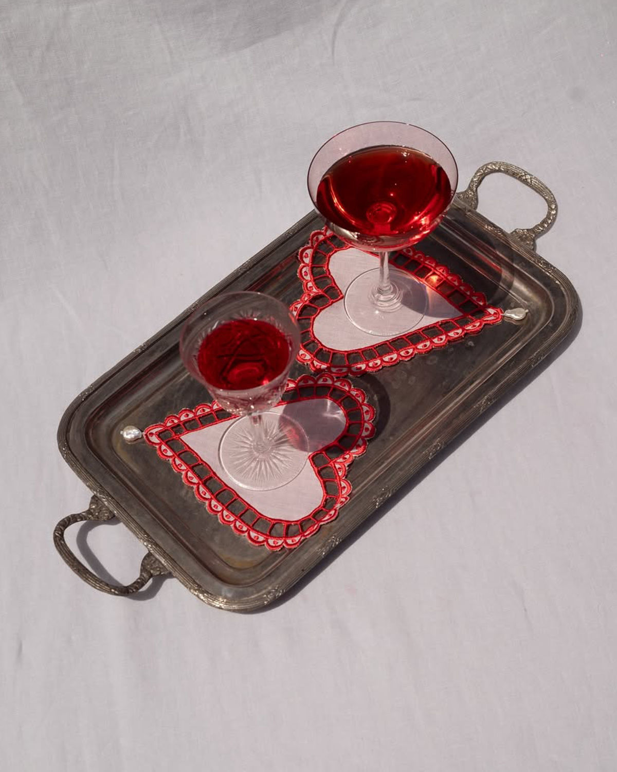 Hearts and red still reign supreme when it comes to romance, and this Galentine’s, we’re not fighting it. Lean into the iconography with heart-shaped treats, bow-tied snacks, crimson cocktails, and tables dressed in every shade from cherry to oxblood. Pair bold reds with delicate whites, throw in vintage silver, and you’ve got a vibe that’s part retro romance, part cool-girl soirée.
