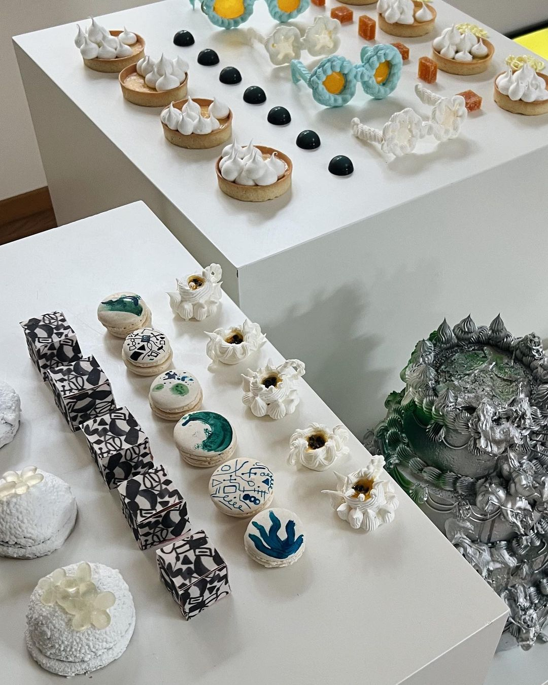 Accommodating various dietary preferences in a single wedding cake can sometimes be challenging. Instead, consider opting for portioned desserts which cater to different tastes. Choices abound: from madeleines and pavlovas to chocolate-covered fruits. For a real showstopper, think about creating a full-scale dessert installation to truly dazzle your guests.