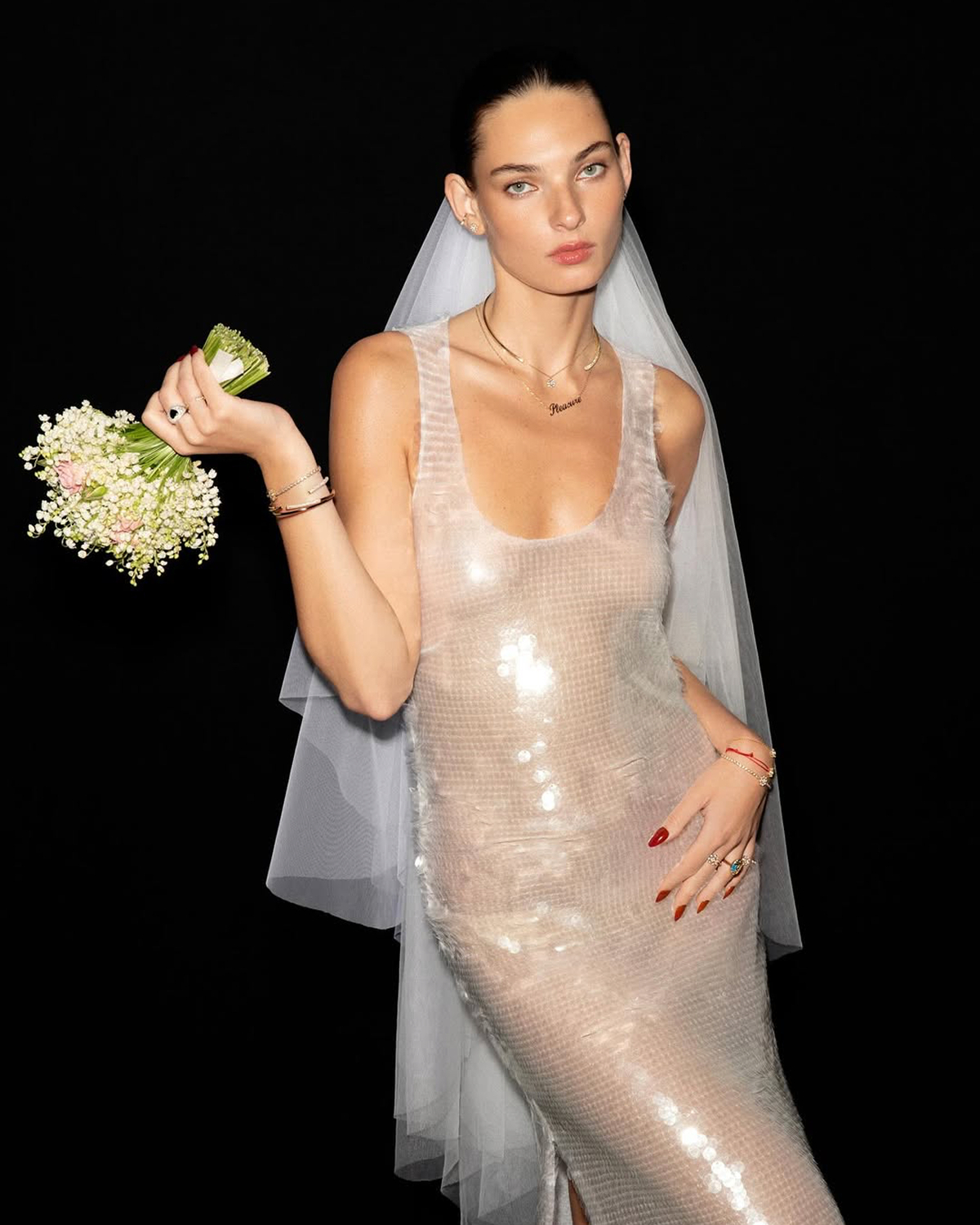 While dresses may be trending shorter, veils are going longer, louder, and more dramatic. Gen Z brides are treating the veil as its own statement piece using crochet textures, juliet caps, bold lace trims, or opting for extra-long cathedral styles that steal the show. It’s the accessory moment that brings high fashion to even the most minimal look.