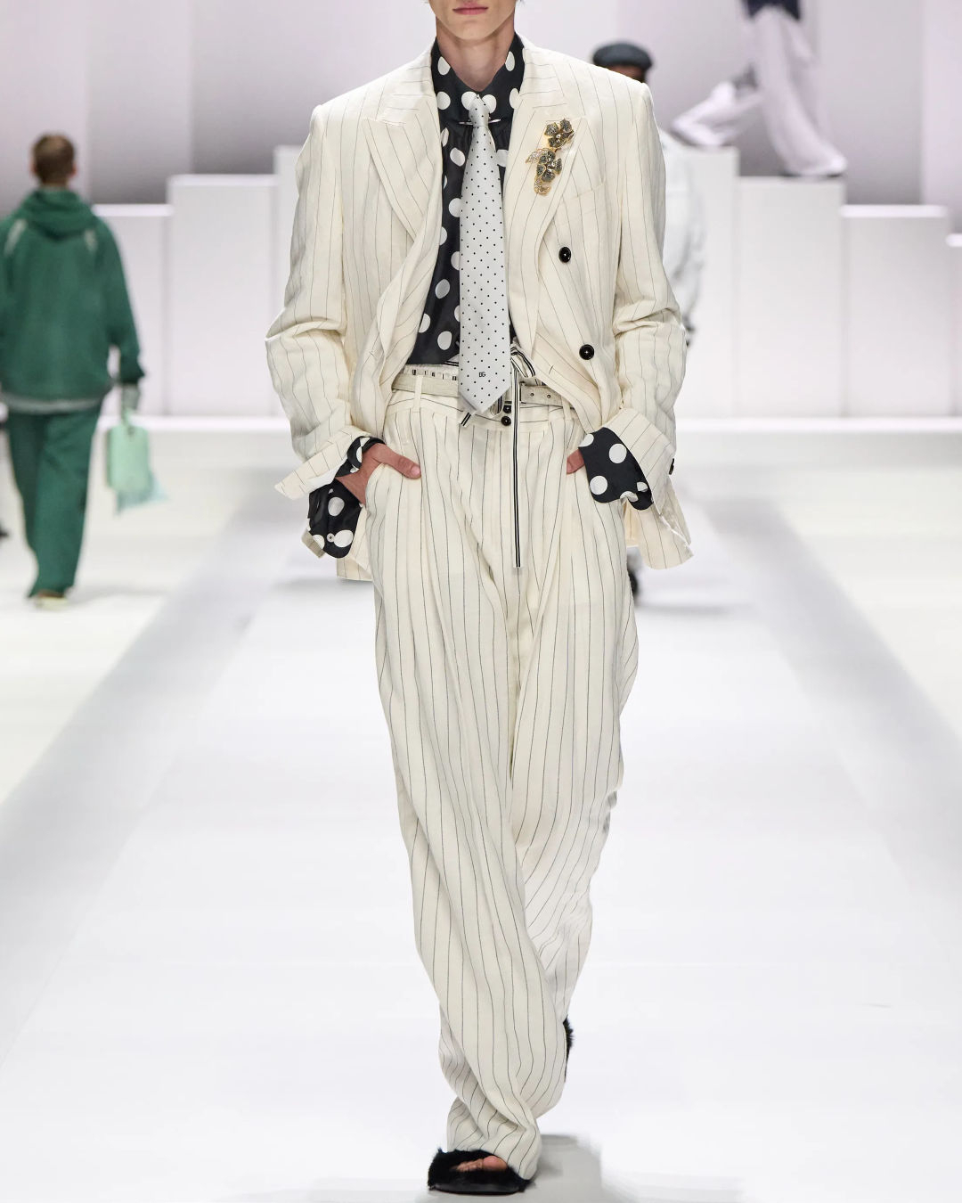 Stripes may be a classic, but Spring-Summer 2026 runways confirm they’re anything but boring. This season, brands like Dolce & Gabbana and Saint Laurent are giving the linear look new life. Keep it sleek with a pinstriped jacket over solid underlayers, or turn up the volume by clashing bold striped and patterns for a bolder, fashion-forward statement.