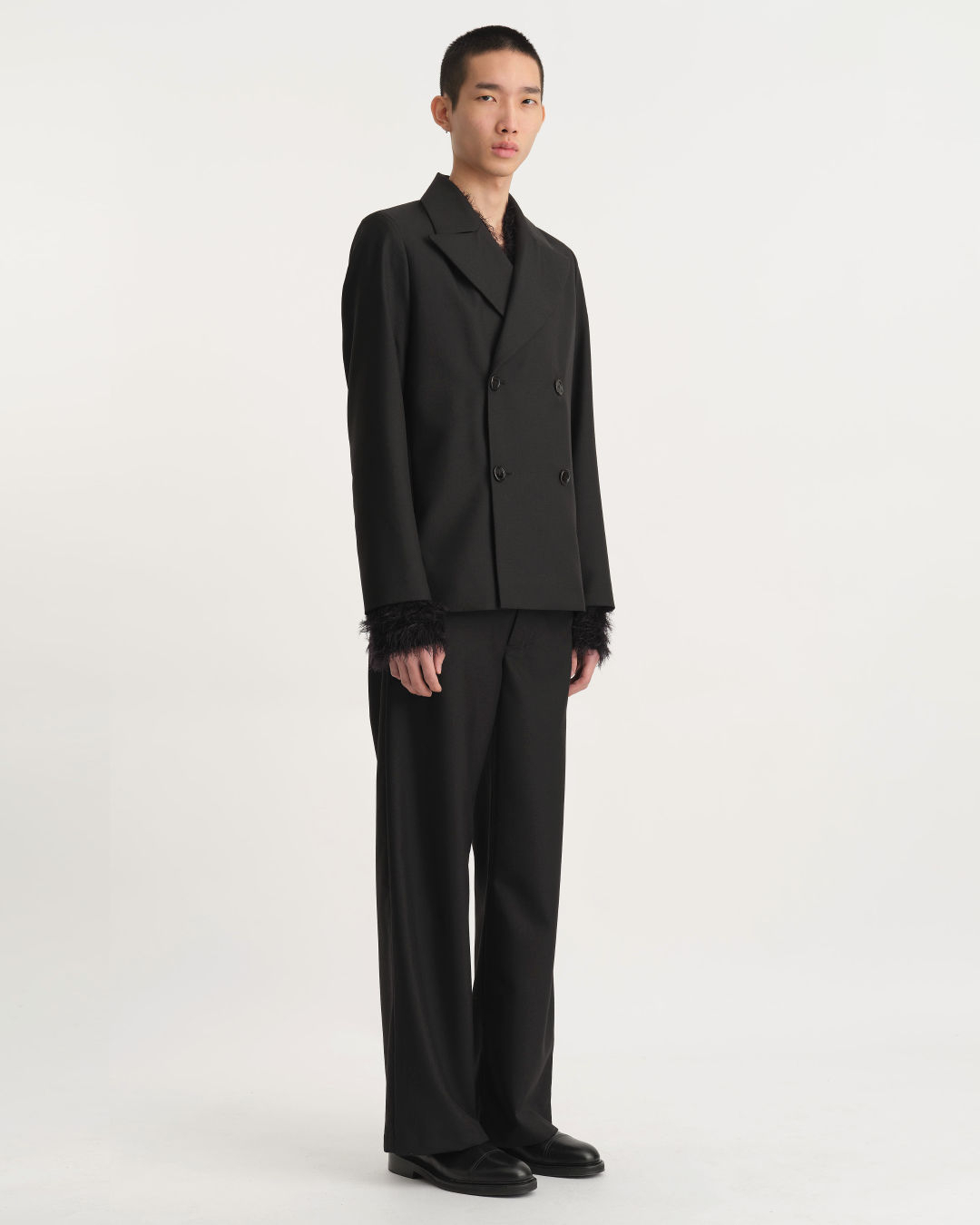 Acne Studios Double-Breasted Jacket, $800, and Tailored Trousers, $440