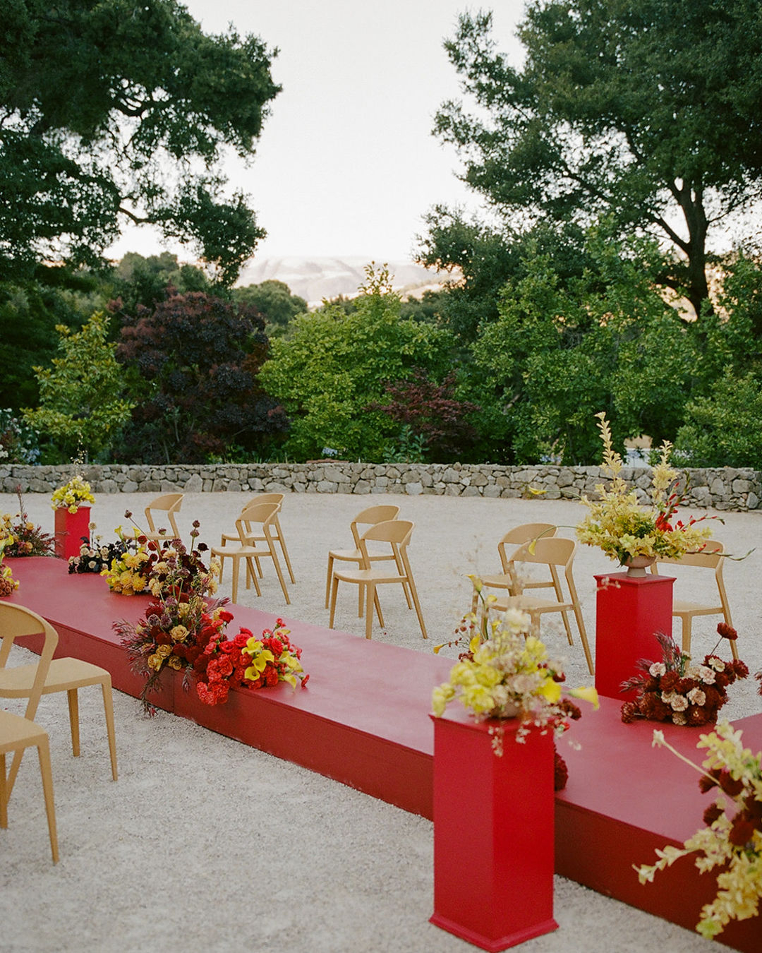 Bold reds and vibrant yellows collide at California's Stonepine Estate, setting the tone for a luxurious wedding weekend with high-fashion spirit. Drawing from the nostalgic, old-money glamor that is Gucci, a team of dynamic vendors, redefines classic celebration intertwining traditions with fashion-forward editorial concept.