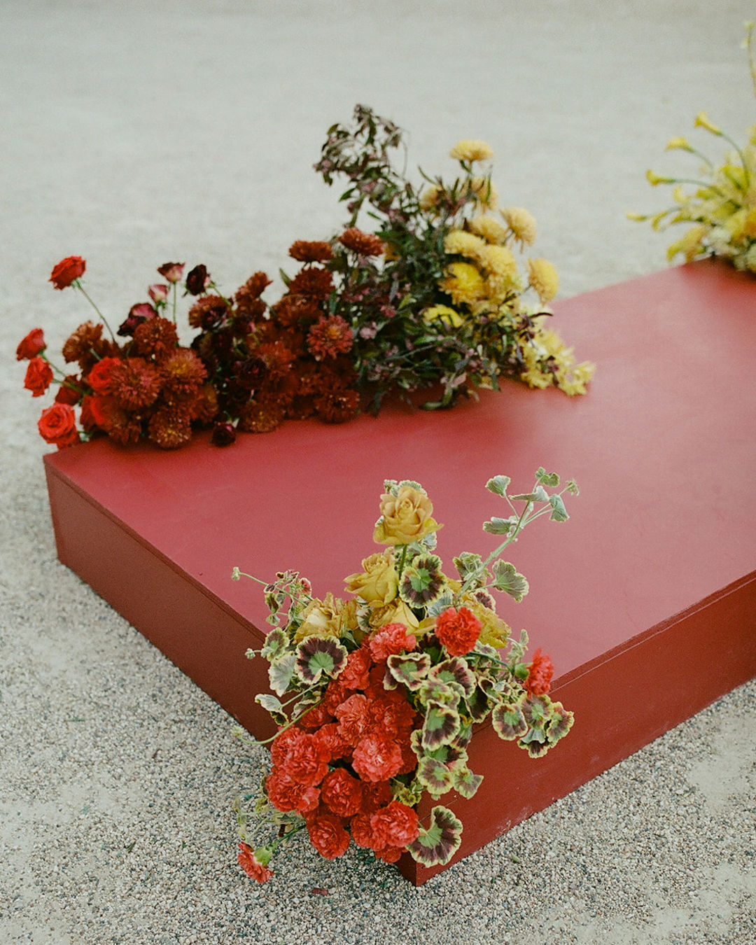 Breaking the mold, the bride and groom exchange their vows on a custom runway-inspired stage, beautifully adorned with red and yellow floral varieties. From the rehearsal dinner to the morning moments, the ceremony and candlelit dinner, every moment is a powerful celebration of creativity and love, inspiring couples to look beyond the ordinary.