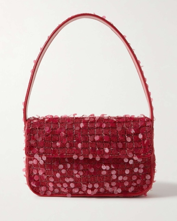 Staud Tommy beaded satin shoulder bag, $350