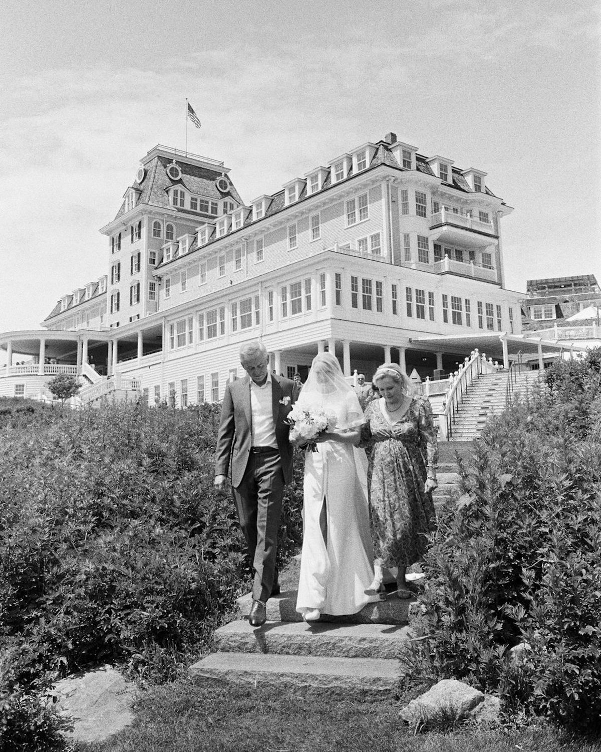 Cocktail hour makes up some of my favorite, candid frames. Everyone is on a high from the ceremony and the couple is really present so it's a wonderful time to capture those bonds. While we never like tearing them away from the festivities, it's usually the only time to get the family and bridal/ groom party portraits. Providing a list of names for all the group photos in the lead up to the wedding day will make this time most efficient so everyone can get back to enjoying the cocktail party celebrations. For this same reason, we also recommend having these portrait sessions on site, rather than jetting off to a new location, to streamline and keep you present with your guests.