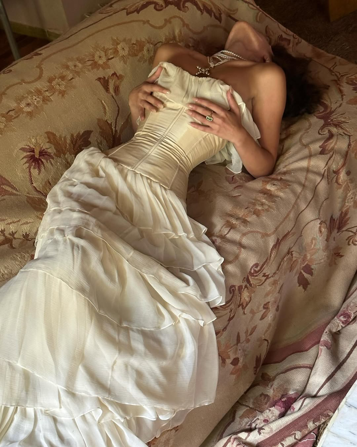 While the Plunging Back Cowl Dress may have sparked Mirror Palais’s bridal chapter, the pathway towards bridal was always there. Signature designs were reimagined for the bride, such as the Cascading Ruffle Gown, originally created in deep red for his first runway show, it then took on a new life when Gaia later reimagined it in white, “it became very ethereal — a romantic piece born out of chaos." That longevity and evolution, he admits, is part of what makes each dress special. “I love that they have that staying power. When first starting out as a small business, when you find your niche — that sort of hero piece — it’s very gratifying.” Gaia’s designs carry a sense of ease, made to be worn, not just admired. Brides often tell him they’ve re-worn their dresses to dinners or vacations, something he quietly takes pride in. “Our dresses are wearable. They’re comfortable, soft. Brides put them on again because they want to — not because they feel they should.” And comfort, for him, isn’t the opposite of glamour. It’s what makes it last. “When brides try on our pieces, they start moving differently. It’s not just about how they look — it’s about how they feel in them. That’s what I want for them: joy, confidence, presence.”