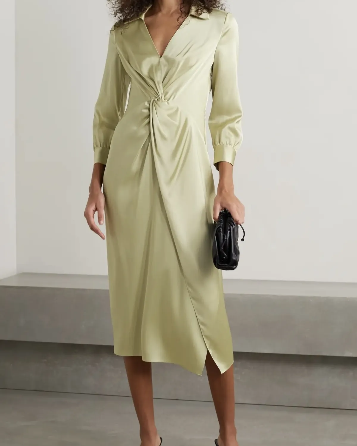 VINCE Draped satin midi wrap dress, $425