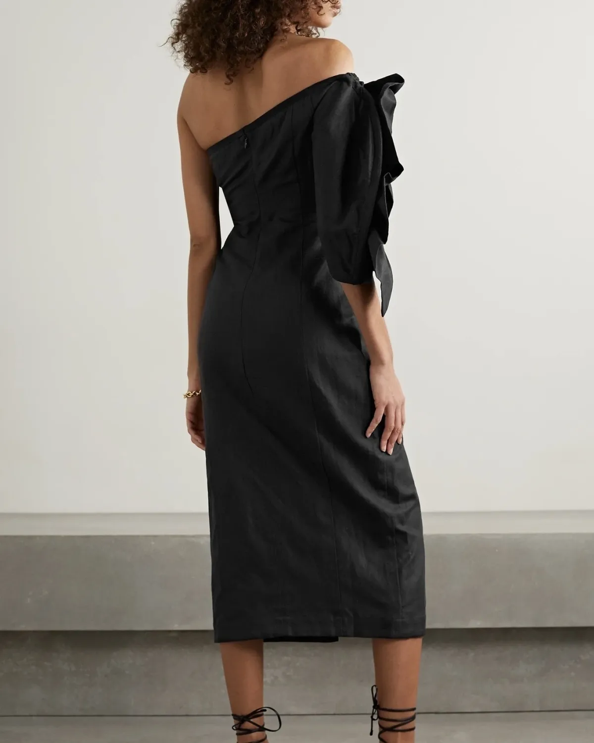 MARA HOFFMAN + NET SUSTAIN Valeria one-sleeve organic cotton and linen-blend midi dress, $650
