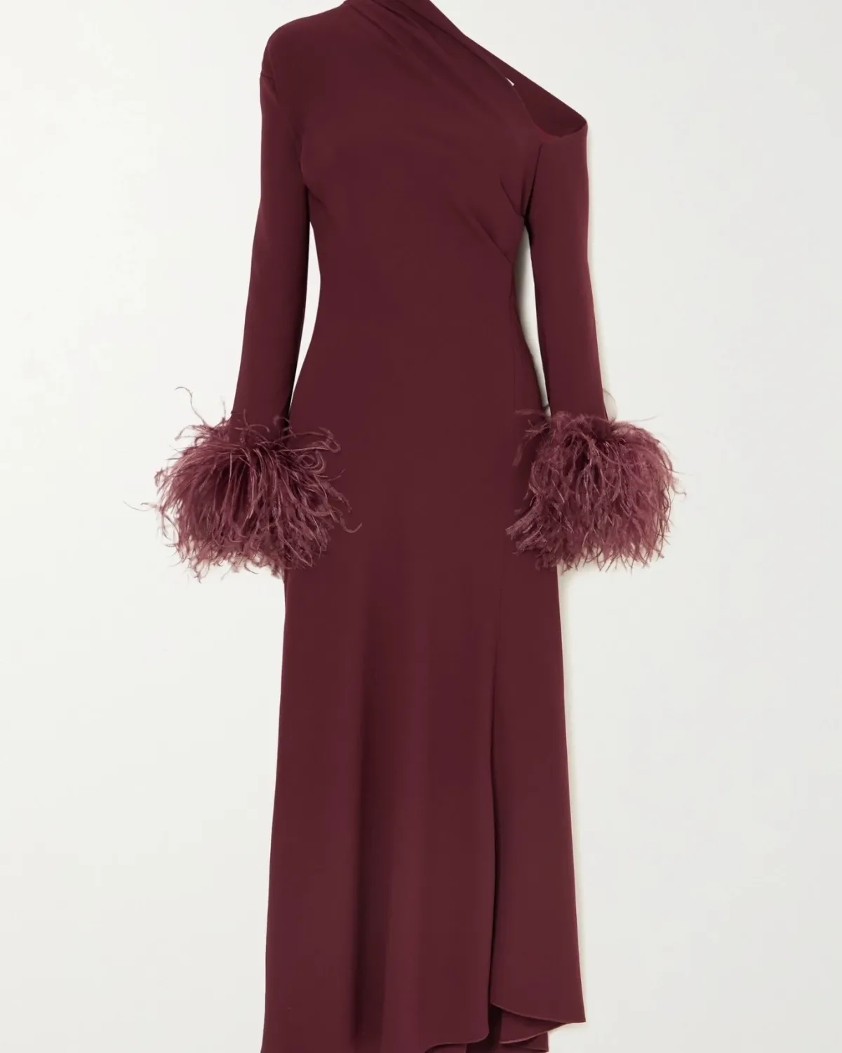 16ARLINGTON Adelaide asymmetric feather-trimmed crepe dress, $1 305