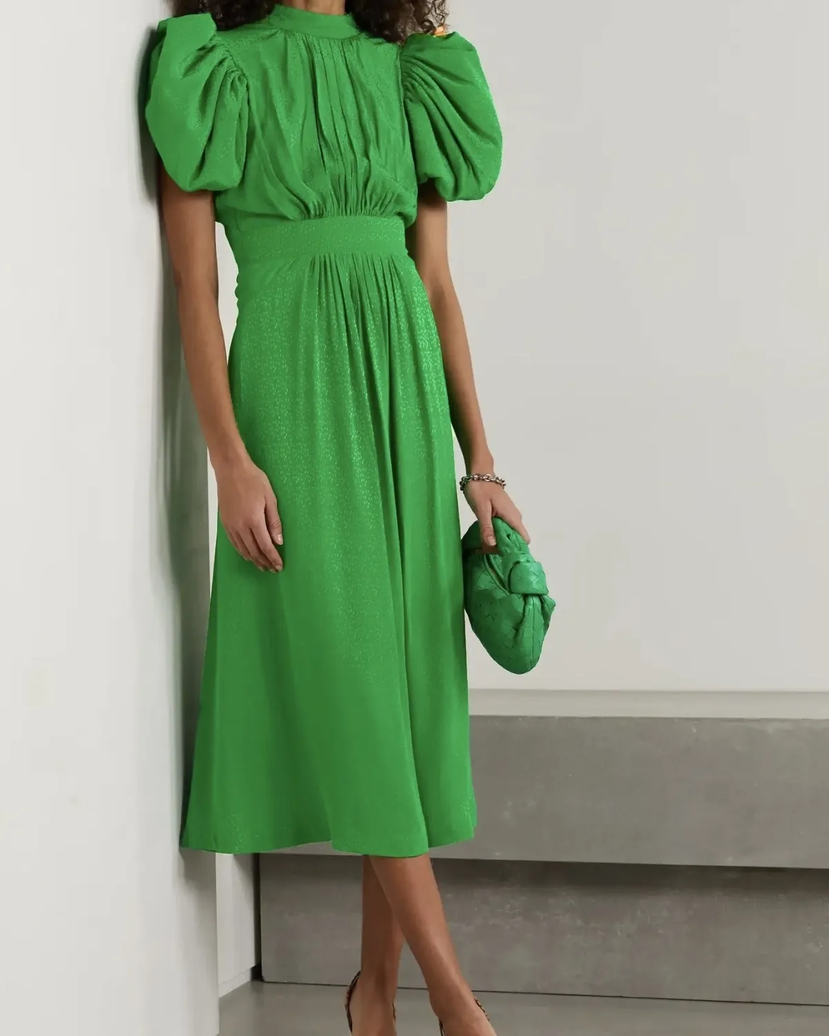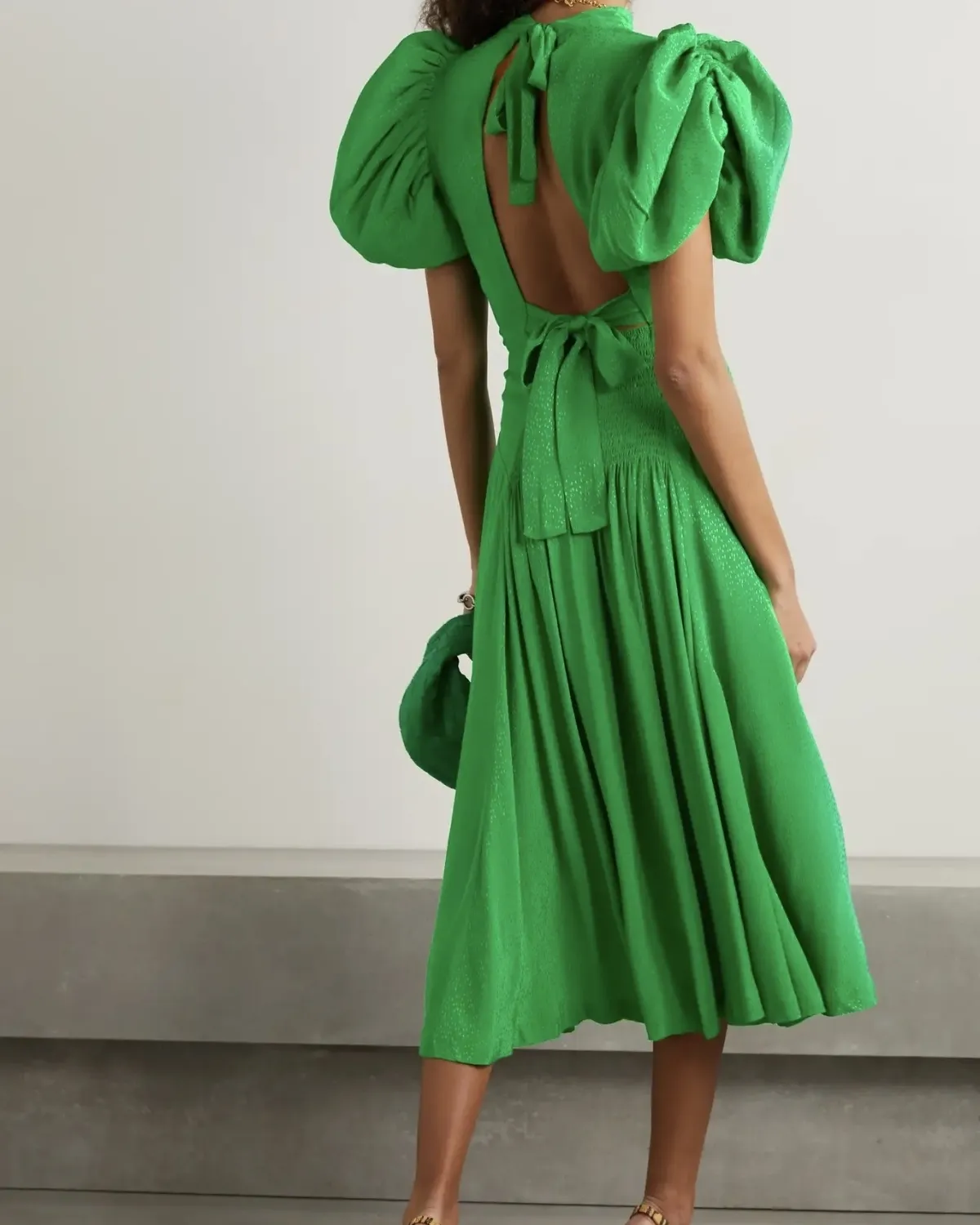 ROTATE BIRGER CHRISTENSEN Noon open-back polka-dot satin-jacquard midi dress, $430