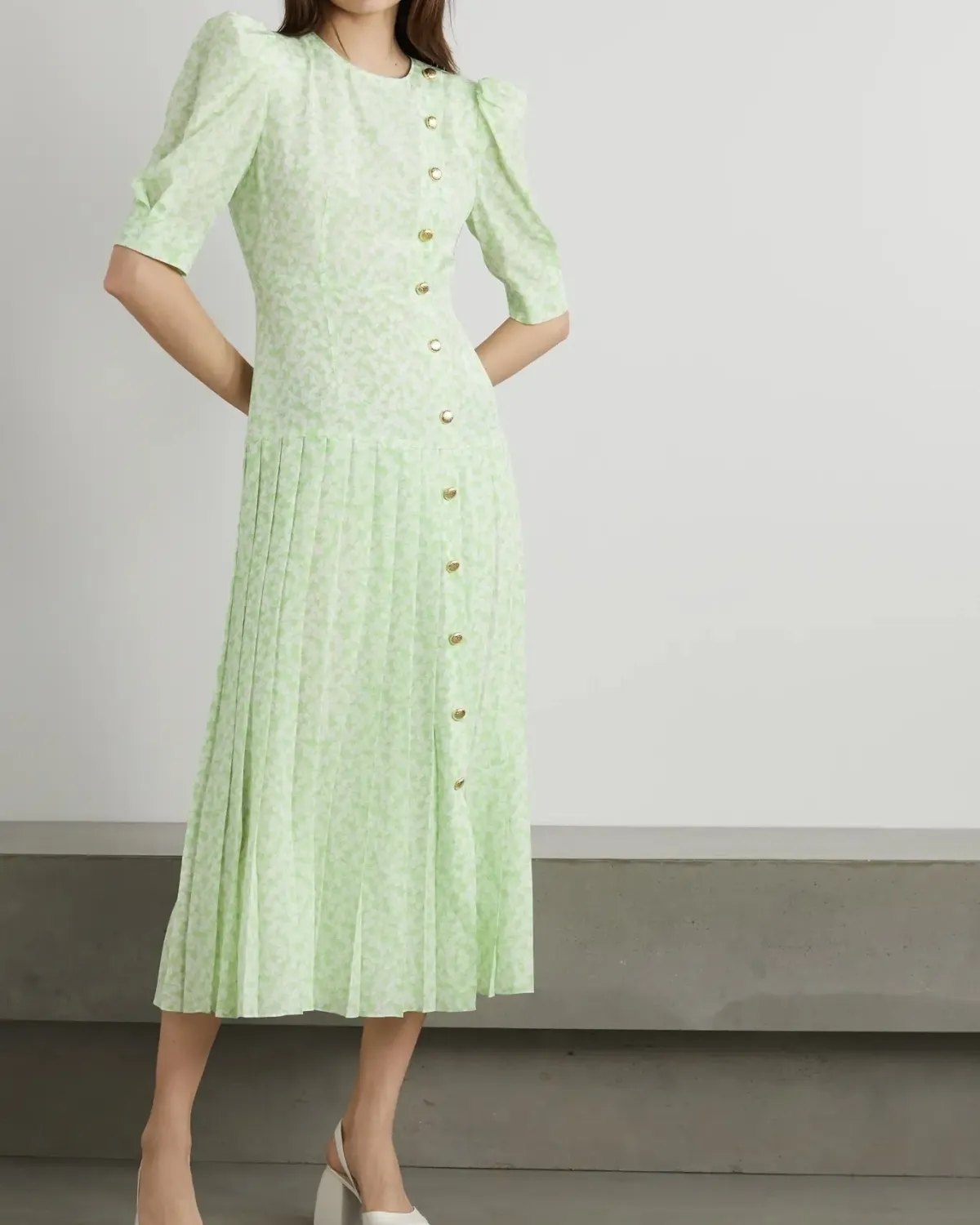 ALESSANDRA RICH Pleated floral-print silk crepe de chine midi dress, $2 105