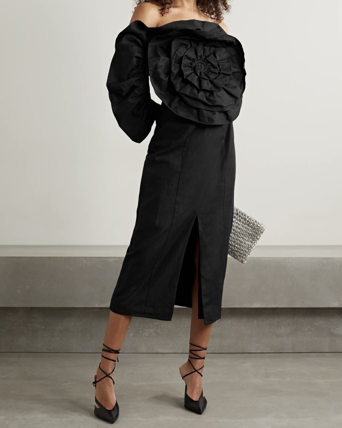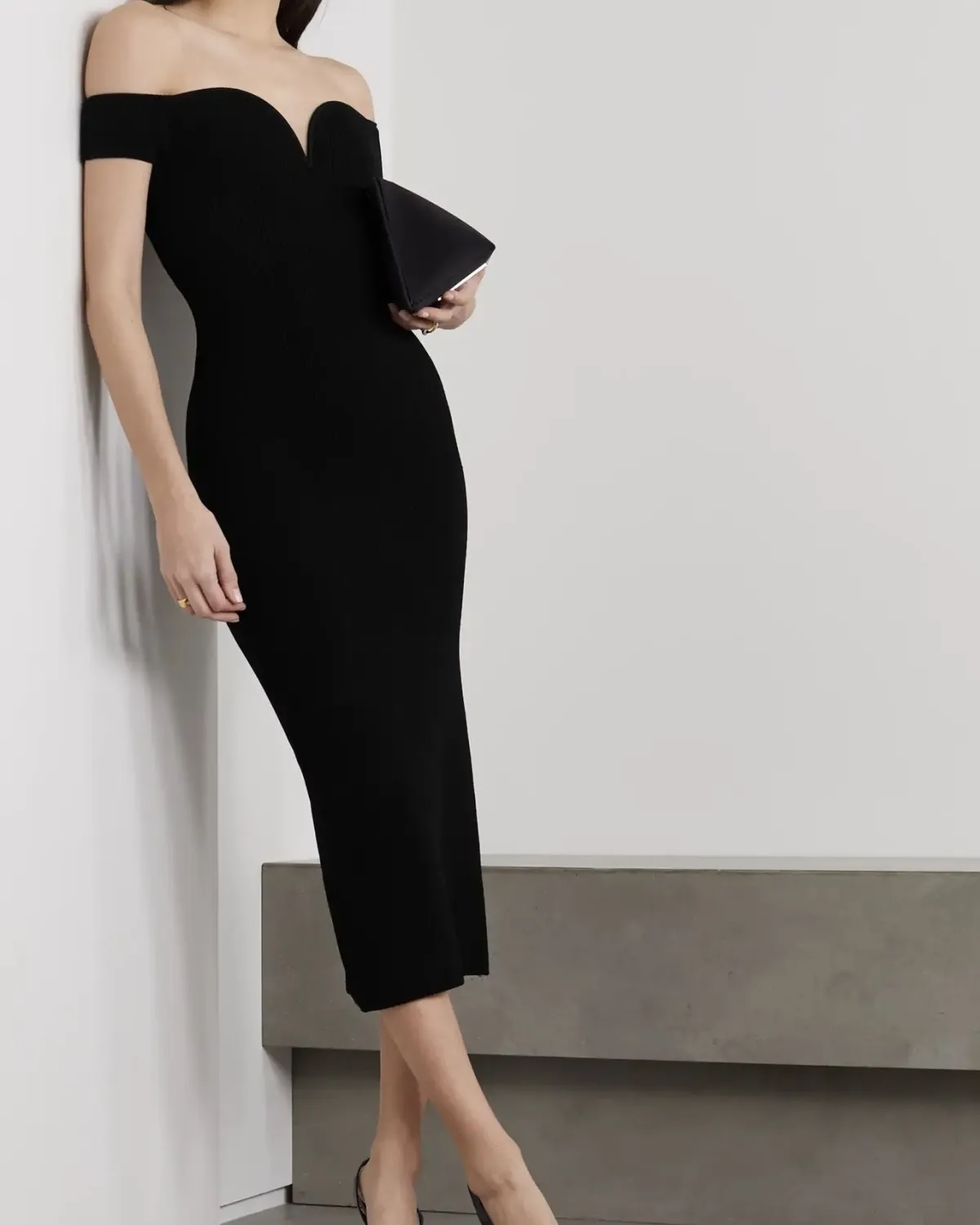 GALVAN Grace off-the-shoulder ribbed-knit midi dress, $895