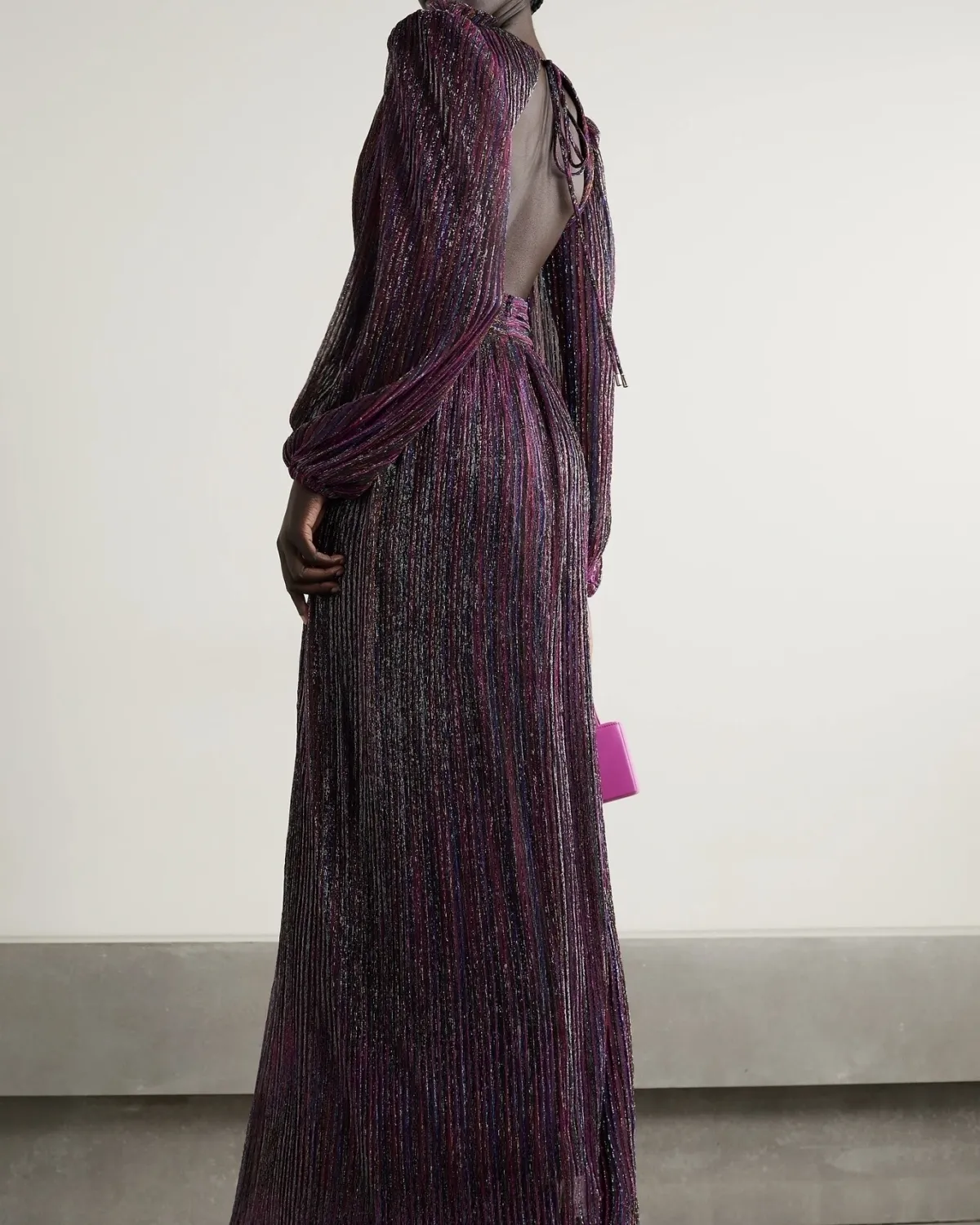 REBECCA VALLANCE Casey open-back plissé-Lurex gown, $855