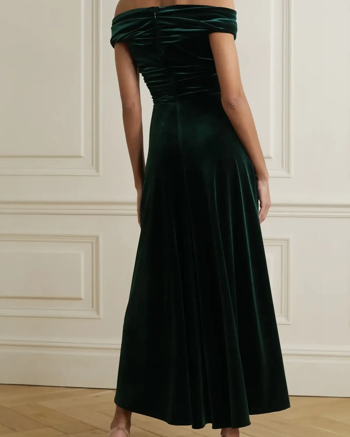 TALBOT RUNHOF Off-the-shoulder gathered stretch-velvet midi dress, $1 995