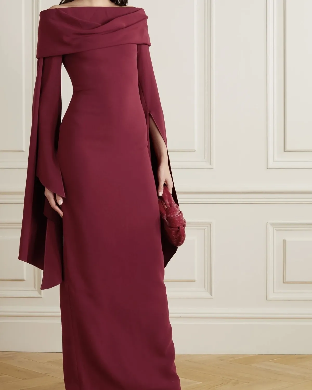 SOLACE LONDON Arden draped off-the-shoulder crepe maxi dress, $575