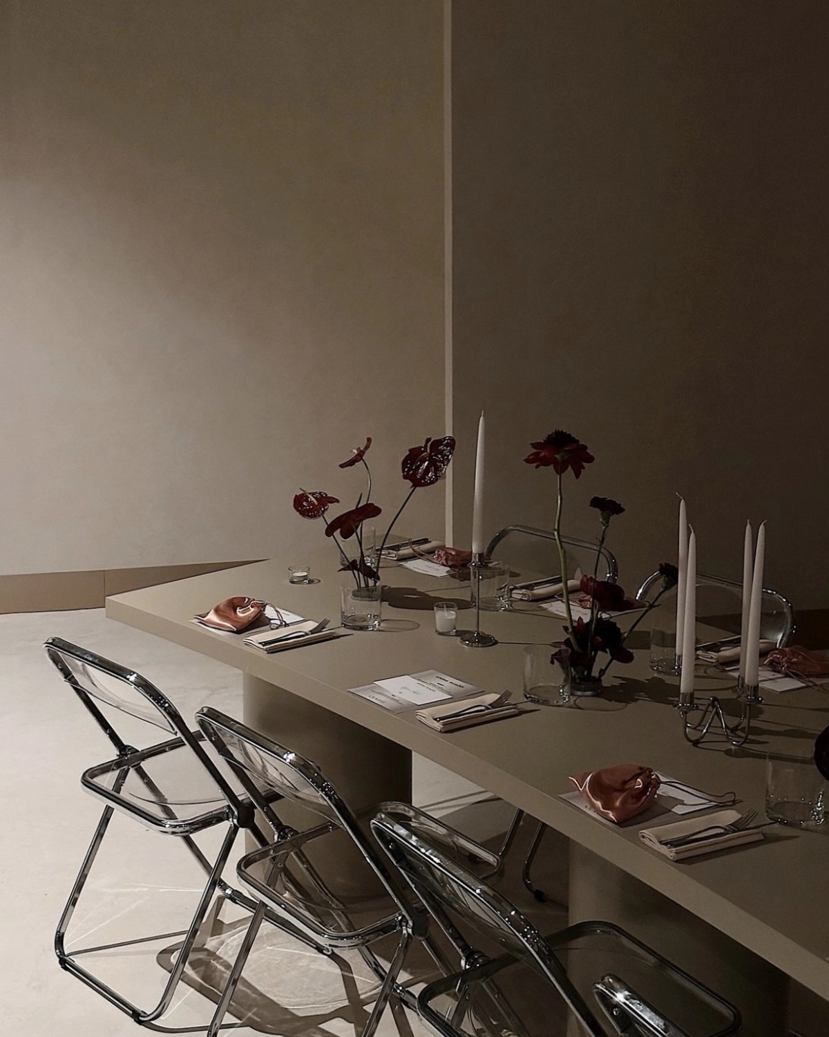 If you want the event to not only impress guests and the bride, but also to be photogenic and particularly memorable, then we suggest thinking about including a trendy set design for the dining table or in a photobooth-like location. This could be an unusual floral design, an eccentric abundance of dramatic candles for an evening occasion, or a set design which corresponds with a particular aesthetic that is close to the bride's heart and vibe.