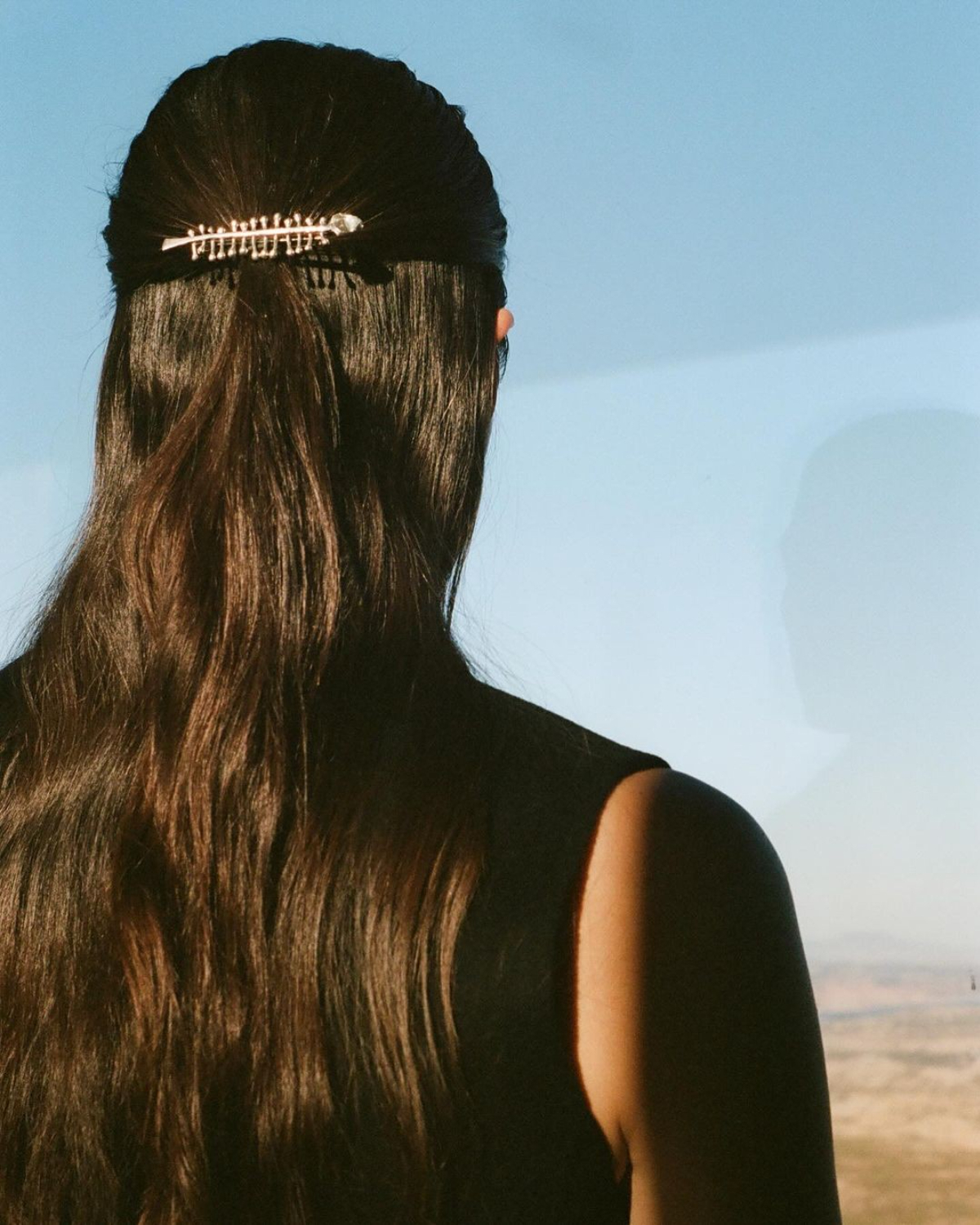 This style strikes the perfect balance between done and undone. Ideal for warm-weather weddings where you want some hair off your face but still want movement, the half-up clip works beautifully with waves or soft curls. Simply take the top section of your hair and loosely secure it at the back with a statement barrette—think tortoiseshell, pearl, or a gold seashell shape. Leave a few face-framing strands out front to keep the look soft and breezy. It’s romantic, effortless, and built to last through dancing and ocean air.