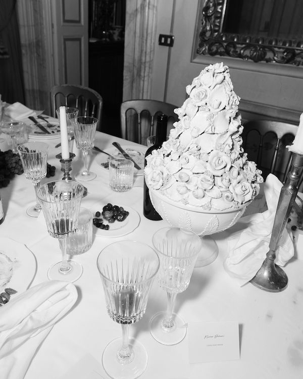 The dresses also had to have a deeper meaning than just being a wedding dress. For that reason, it was important to find a dress from London and Paris. My wedding dress was designed in collaboration with the talented Rime from Rime Arodaky, a French designer. Having worked and studied in Paris, it was such a beautiful process to have the dress come from Paris as a tribute to my youth and love for the city. It was an incredibly special experience to be part of designing my dress with such a skilled designer like Rime, and the dress itself was created with an old Italian vibe, so it perfectly matched the theme of the wedding.