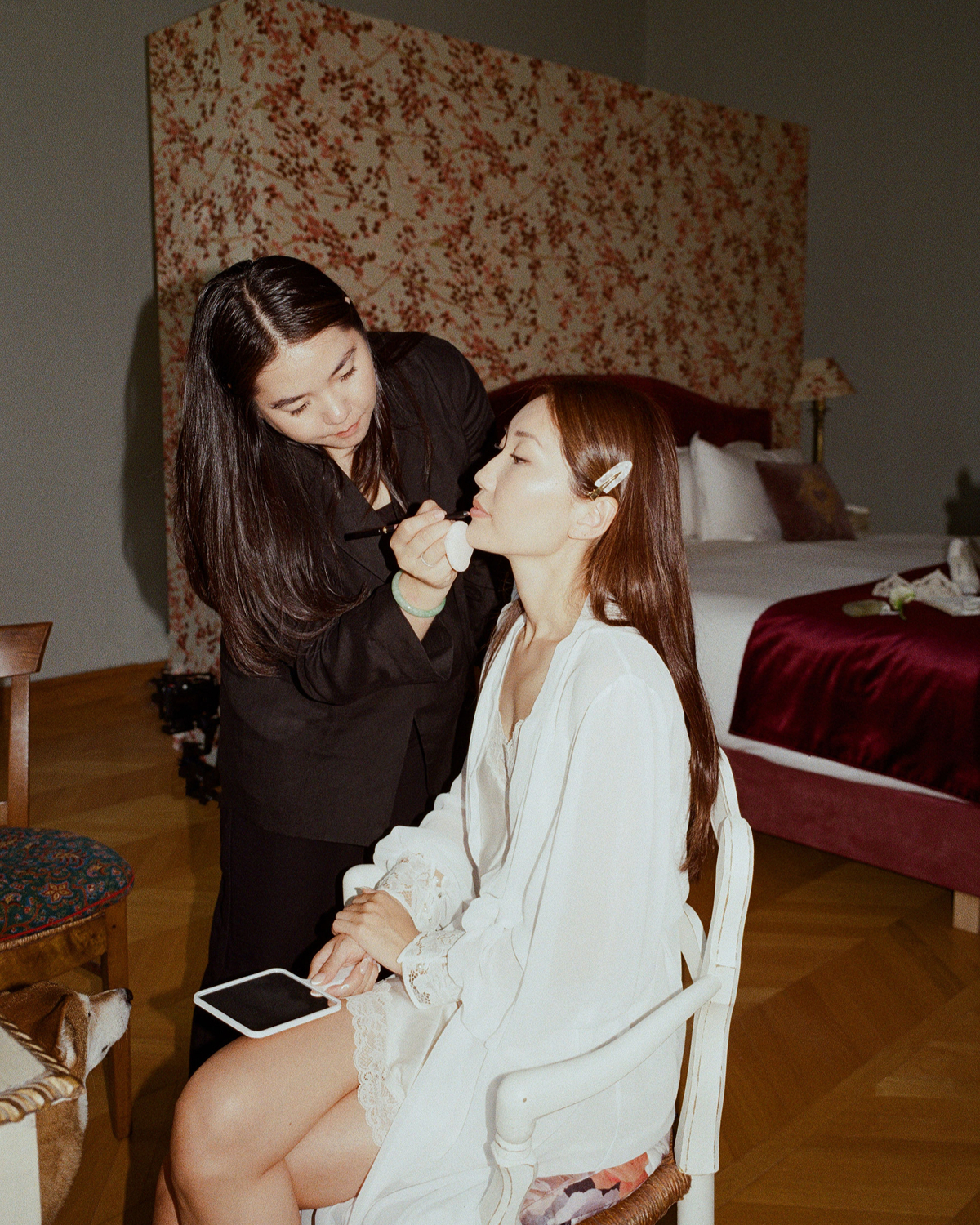 I think timeless beauty comes down to restraint and knowing what feels authentic to you. For my wedding day look, I wanted to channel that and feel like myself — just the most polished version. My makeup artist, Fanny Wong, helped me bring that to life. We focused on really healthy, glowing skin and kept everything close to my everyday look, just slightly more elevated: soft definition, radiant skin, and nothing too heavy or trend-driven. For hair, I went with a classic sleek high bun. It felt clean, elegant, and allowed my dress to really shine.