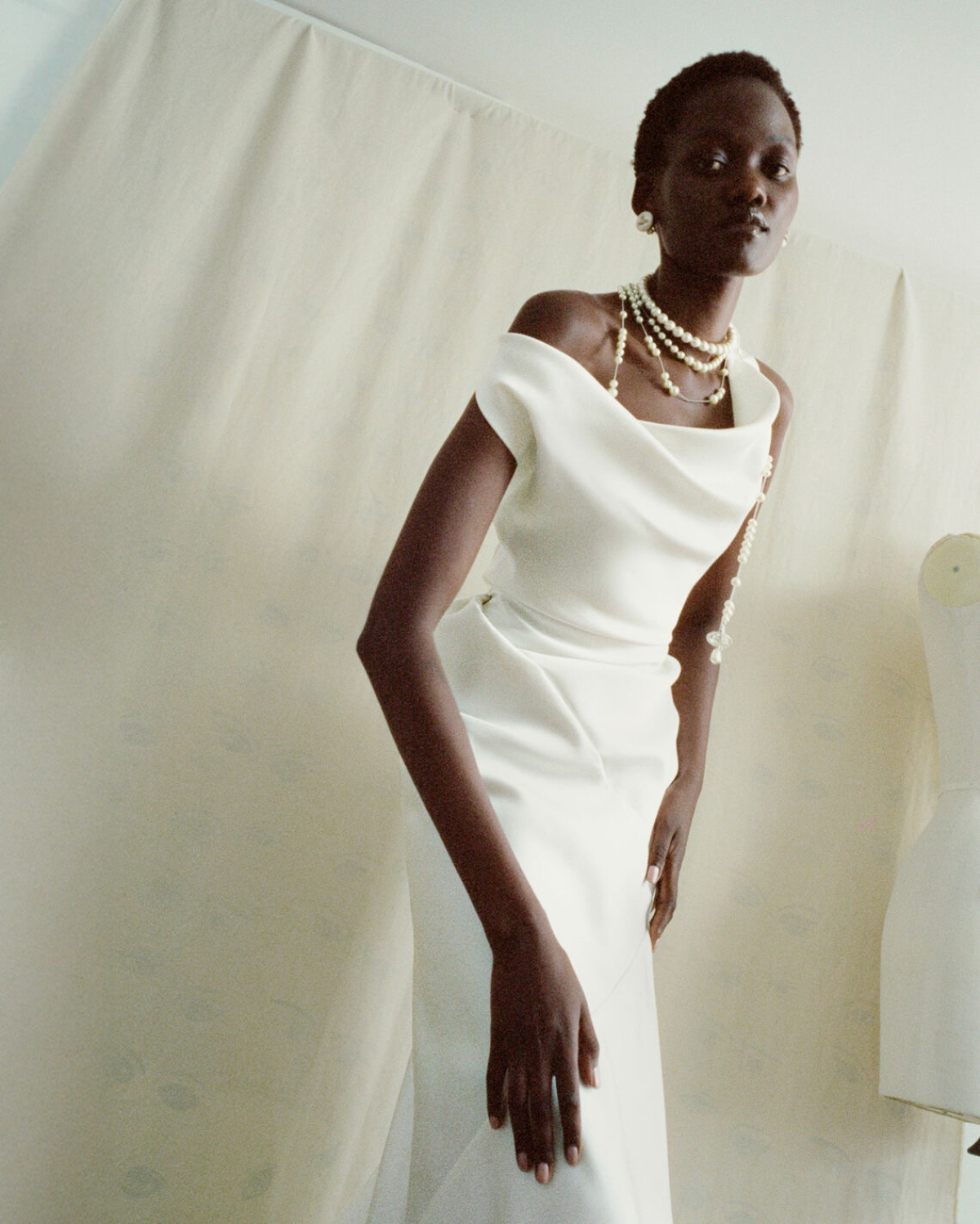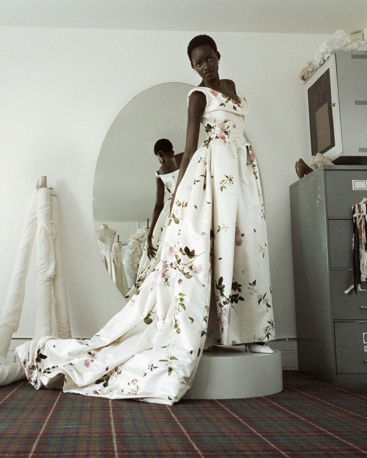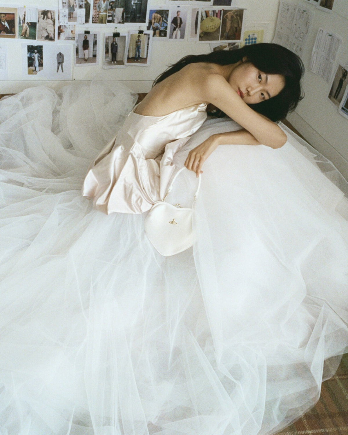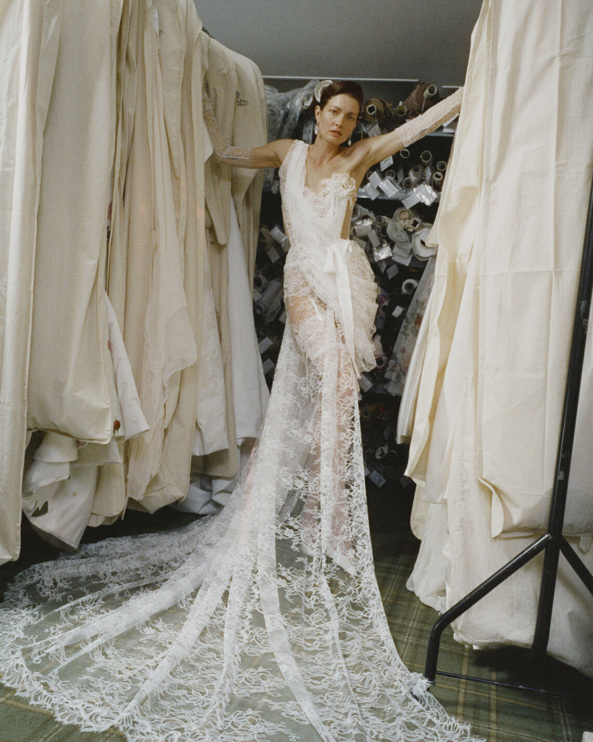 For the Made-to-Order collection, tradition meets quiet rebellion. Westwood’s archival signatures – draping, structure, and subversive femininity – are reimagined through a contemporary lens. The collection's rose print, inspired by 18th-century botanist Pierre-Joseph Redouté, intertwines with orange blossom motifs. These motifs symbolize purity and renewal. Italian duchesse satin, faded lace, and washed jacquards evoke heirloom garments – pieces that tell a story, are lovingly worn and passed down, and are reborn.