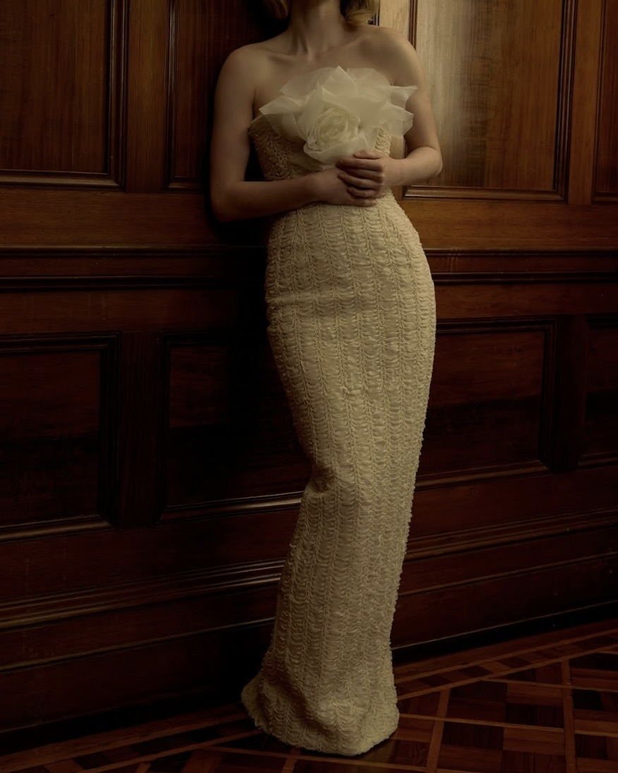 A palette of ivory to deep ivory runs through the collection, woven in silk and satin – natural textures that echo Floure’s reverence for imperfection and craft. With Chapter V, Floure invites us to witness beauty not as symmetry, but as soul – to find poetry in the undone, and strength in softness.