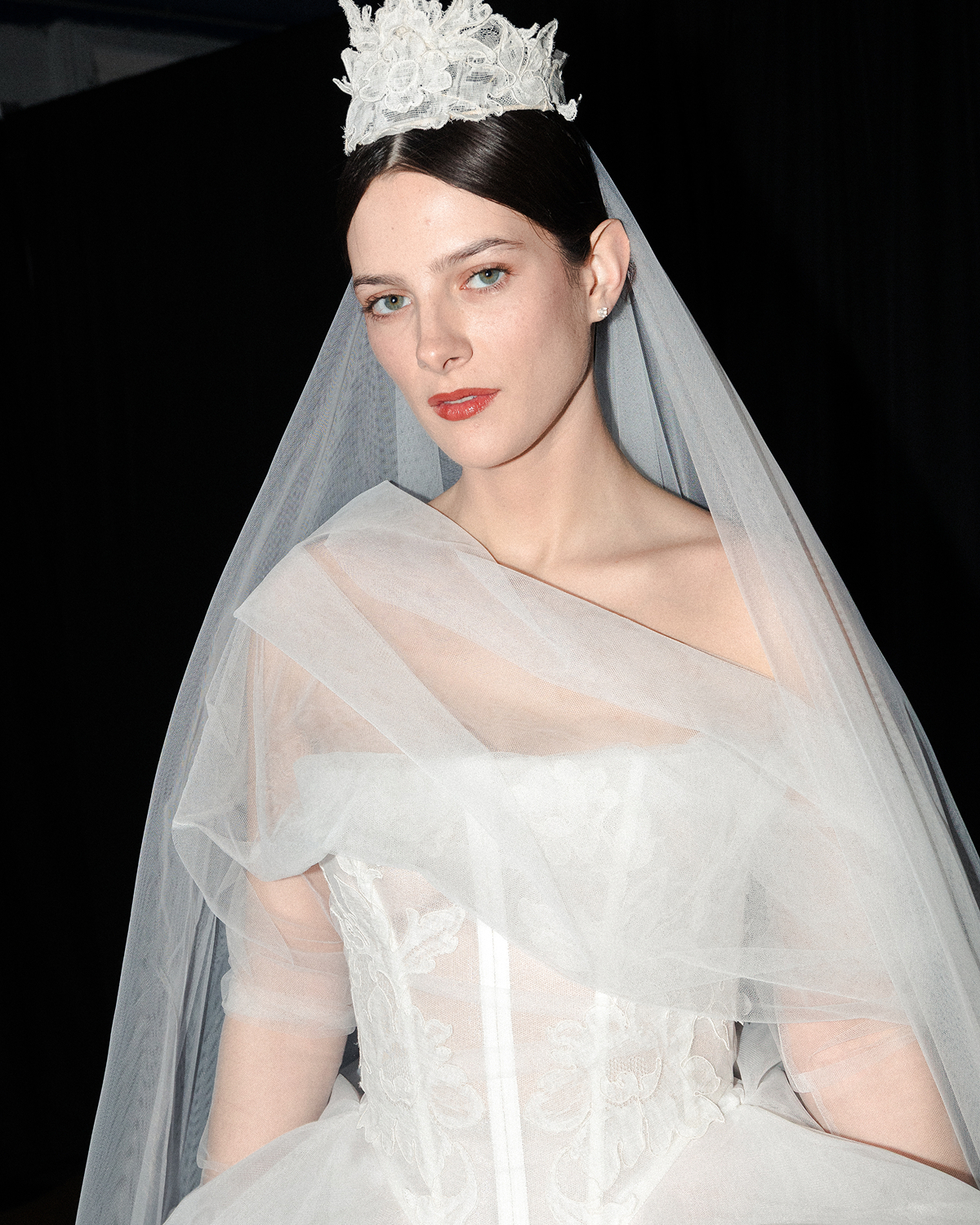Varca's latest collection is pure romantic rebellion. With lace corsets, voluminous, sheer silhouettes, and just the right amount of grunge, the 2026 collection—titled My Metal Garden—is perfect for the modern bride who wants to stand out without sacrificing softness. Dramatic tulle veils and oversized headpieces bring an ethereal edge, while metallic beaded details catch the light with every movement. There’s a sense of rebellion beneath the romance, making each gown feel like an ode to brides who embrace contrast in their sense of style.