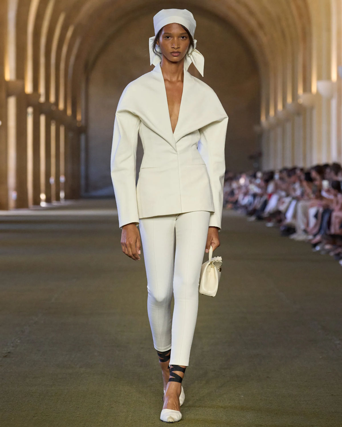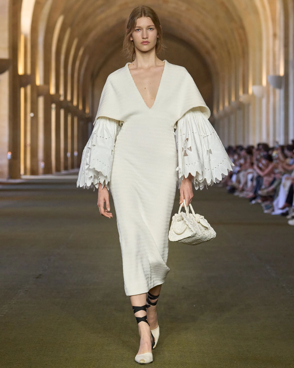 Beyond its narrative, the collection pulses with bridal potential. White full skirts, casually elegant headscarves, sculptural batwing gowns, airy tulle halters, and handcrafted crochet dresses floated down the runway. The silhouettes felt homespun yet refined—not only channeling rural romance but reimagining it through a modern, couture lens, offering a fresh, poetic alternative to tradition.