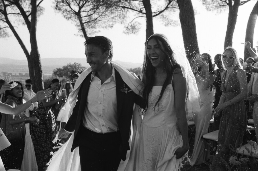 A friends-moon!! After the wedding, we drove to a nearby hotel in Tuscany to enjoy three quiet days as newlyweds—just enjoying being husband and wife and taking in the events of the weekend. After that, we decided to regroup with a bunch of our friends in Ibiza and keep the party going. It was honestly the best—I highly recommend a friends-moon.