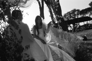 Tuscany – a land where time seems to stand still, and every sunset is painted with the hues of a masterpiece. It was here that Lauren and Travis brought their dream wedding to life at the stunning, 500-year-old Villa Cozzano. As the golden light filtered through the towering pine trees, the couple exchanged their vows at sunset. Each detail was a testament to their vision of authenticity and warmth – from the vintage-inspired menus to the towering Italian berry millefoglie. Lauren’s bridal look was a vision of its own. She walked down the aisle in a breathtakingly embroidered gown, paired with a vintage-inspired silk headscarf – a stylish touch that evoked whispers of old-world romance. Every moment of this day was more than just a wedding – it was an embodiment of pure love, a sun-drenched, heartwarming experience.