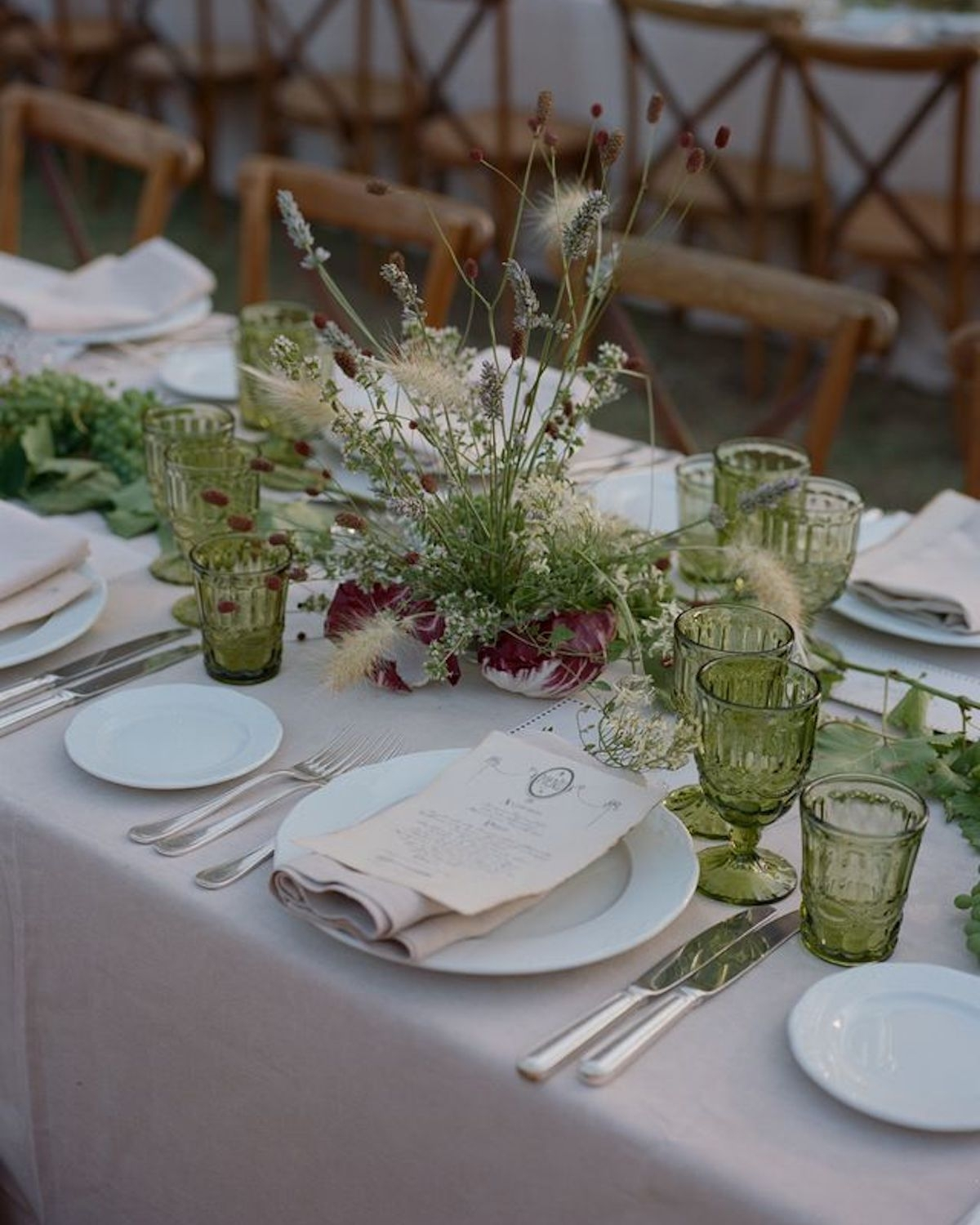 Our goal was to create an experience that felt approachable and relaxed, much like my personal design style. Since our guests were traveling far to celebrate with us, we wanted the weekend to feel like a true vacation—intimate, laid-back, and abundant. The vibe was inspired by the warmth of a gathering in your nonna’s backyard, and Daniel at Alimentari Flâneur brought that vision to life flawlessly. We find beauty in imperfection, so I focused on details that felt organic and authentic. Rustic linens, mismatched plates, and an effortlessly undone aesthetic set the tone. It was less about perfection and more about sharing a delicious meal, enjoying overflowing wine, and dancing under the Tuscan sun with the people we love most.