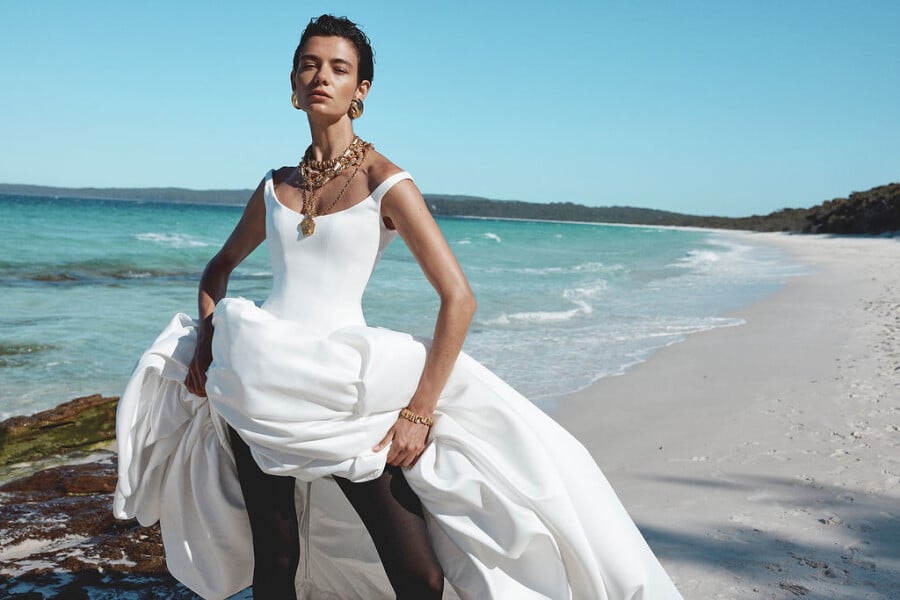 Kyha Bride continues to blur the lines between fashion and bridal, rewriting the script of modern bridalwear. Founded by Kyha Scott, the label takes its cues from the runway, channeling a strong, style-forward attitude. With its newest collection, Chroma, the brand brings the warmth and sun-soaked energy of Australia’s east coast into 2027 bridal. Following last season’s poetic, Vietnam-inspired Waterlines, Chroma shifts the mood, drawing from the high-contrast glamour of 1980s beach culture.