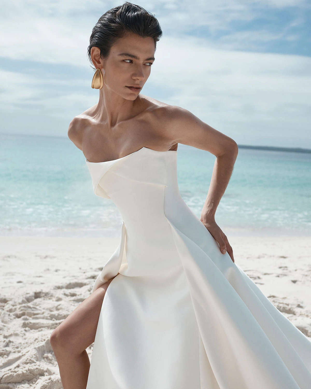 White sand, vivid blue skies, sculptural silhouettes, and flashes of saturated color run through the collection, creating a visual language that balances minimalism with bold expression. This duality carries through into the construction, where Chroma plays with opposing textures and forms, layering structure against movement and matte against shine.