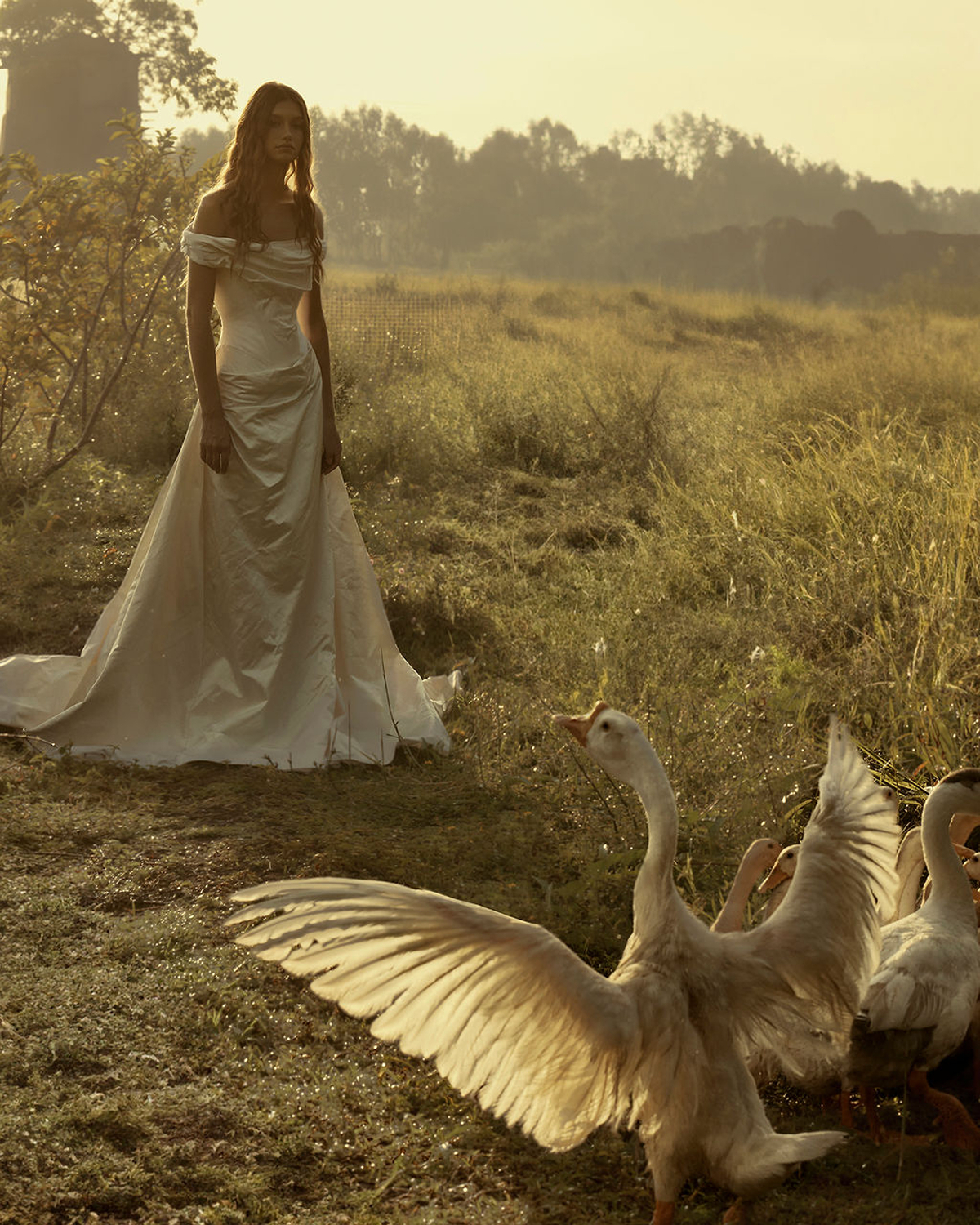 Corsets with soft lines and voluminous, billowing silhouettes—signature elements of the collection—are still created in delicate form. Fabric wraps the body and yet moves as though carried by the wind. Sheer fabrics and soft textures play with light and shadow, reminiscent of the sun's reflection on water. The result is a collection that celebrates femininity with modern clarity, yet carries a timeless, elemental spirit.